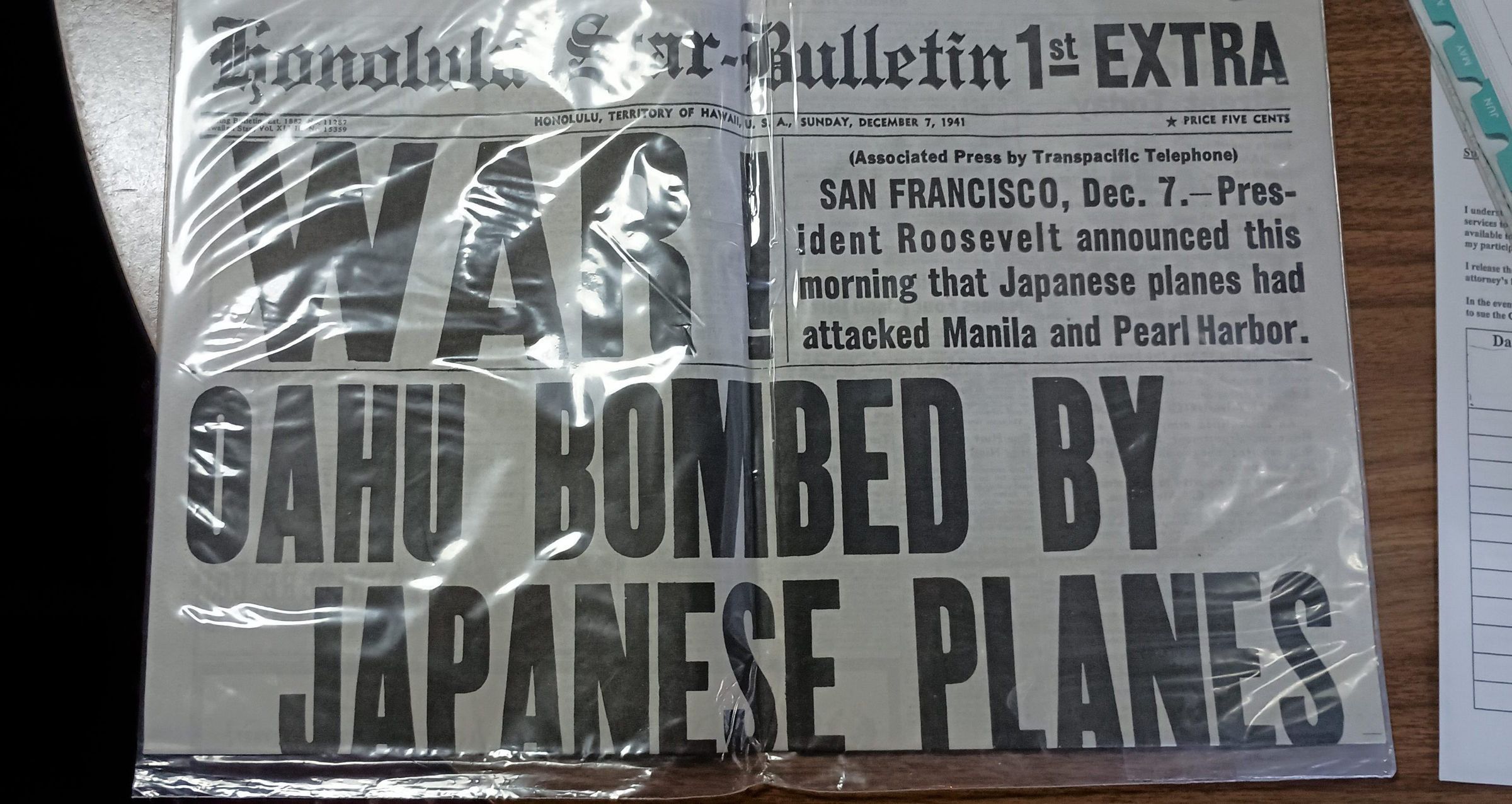 Honolulu Star Bulletin Newspaper dates December 7, 1941Tags