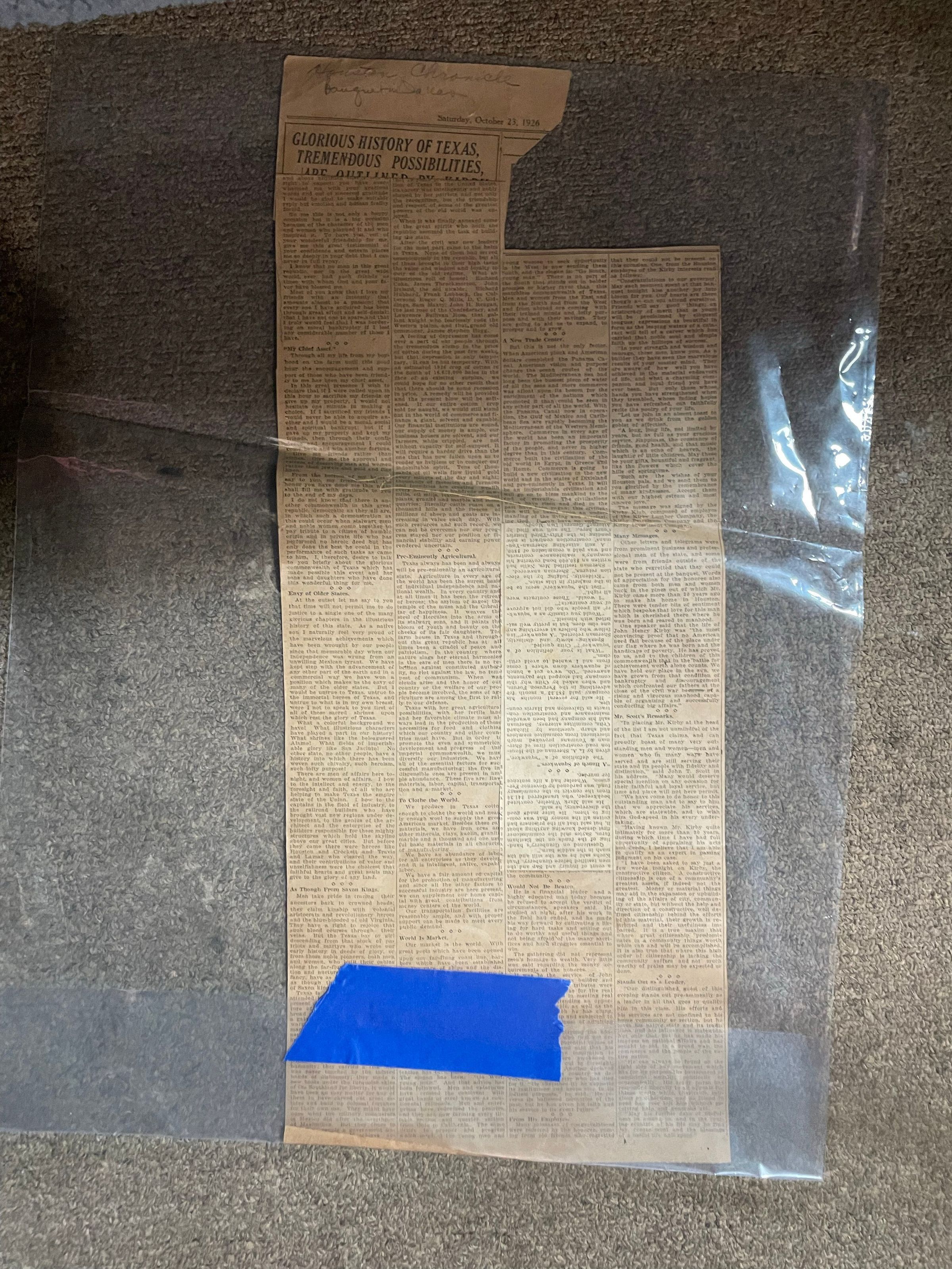 Houston Chronicle Dated October 1926 Glorious History of Texas