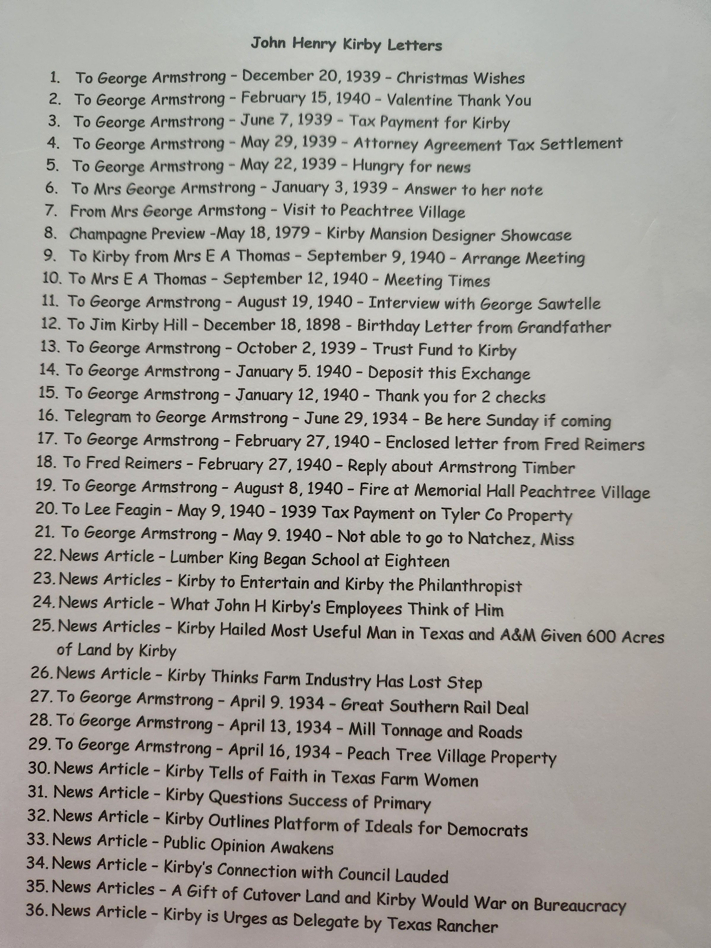 Index of John Henry Kirby LettersTags
