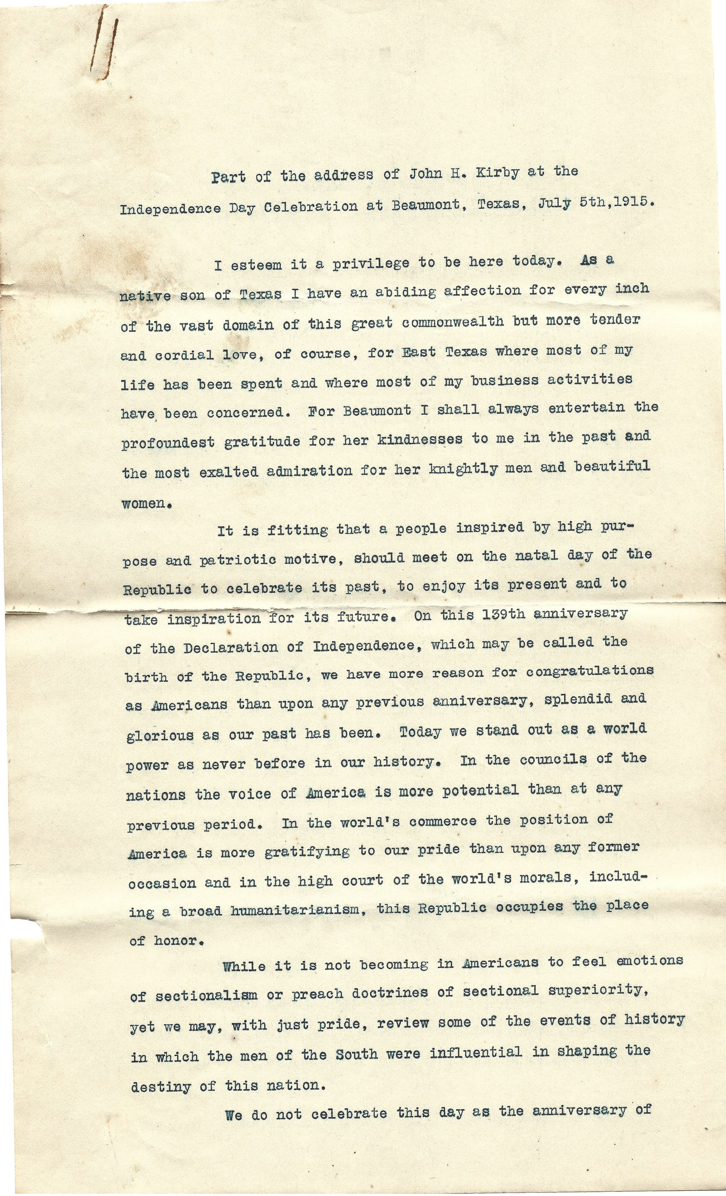 John H Kirby Address at Independence Day Celebration at Beaumont, Texas - July 5, 1915Tags