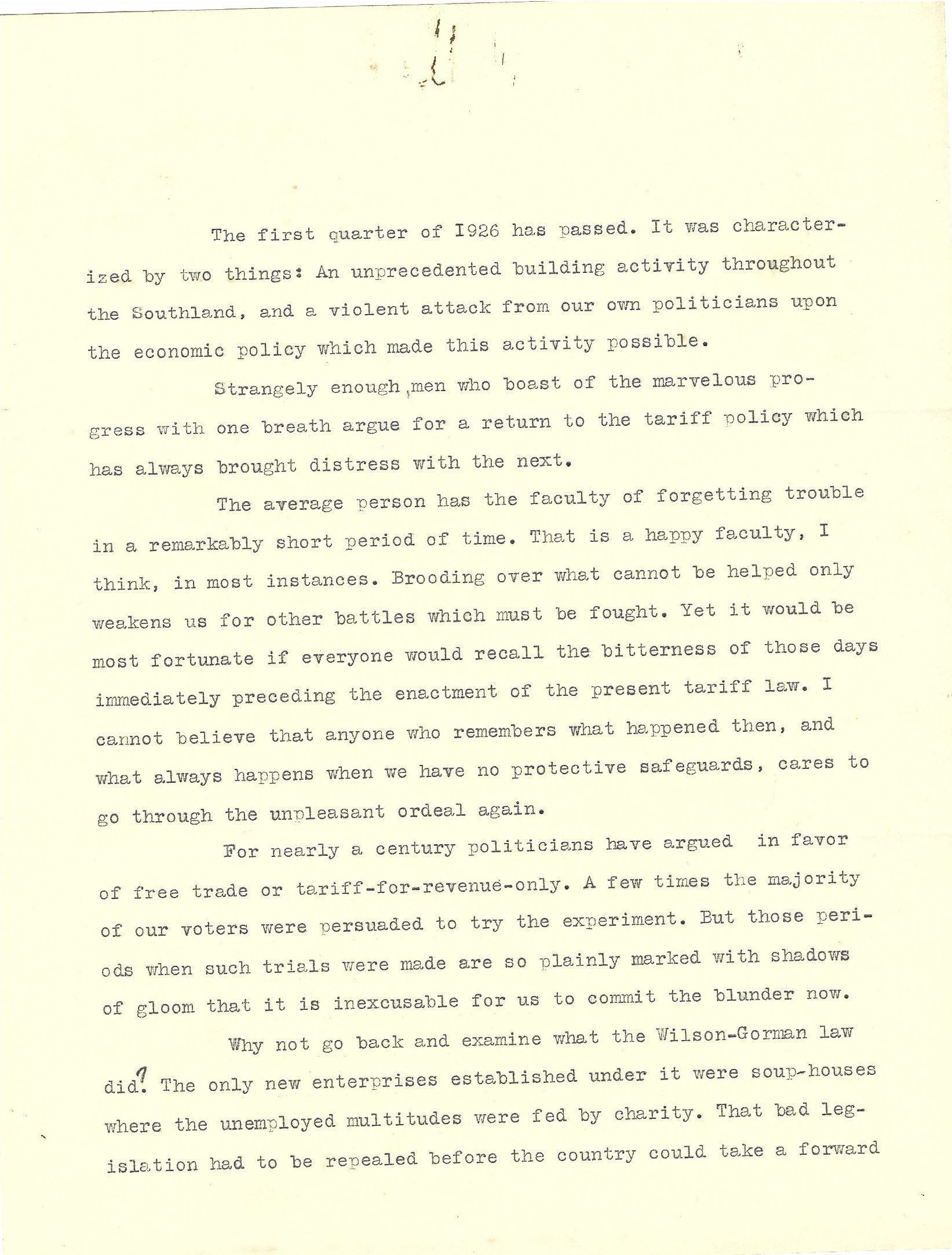 John H Kirby Speech Opposing Free Trade or Tariff-For-Revenue Only Political PoliciesTags