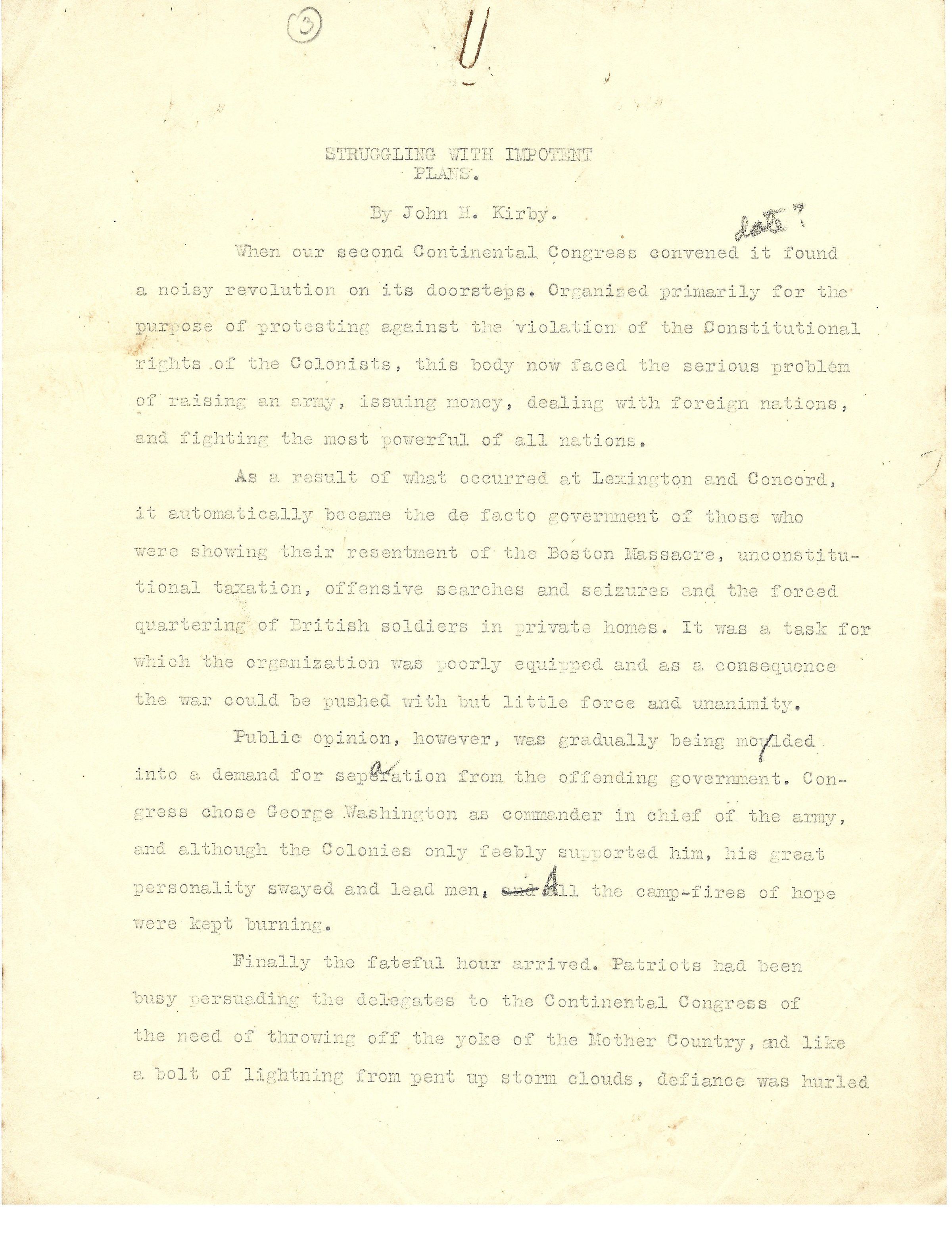 John H Kirby Writing - "Struggling With Impotent Plans"Tags