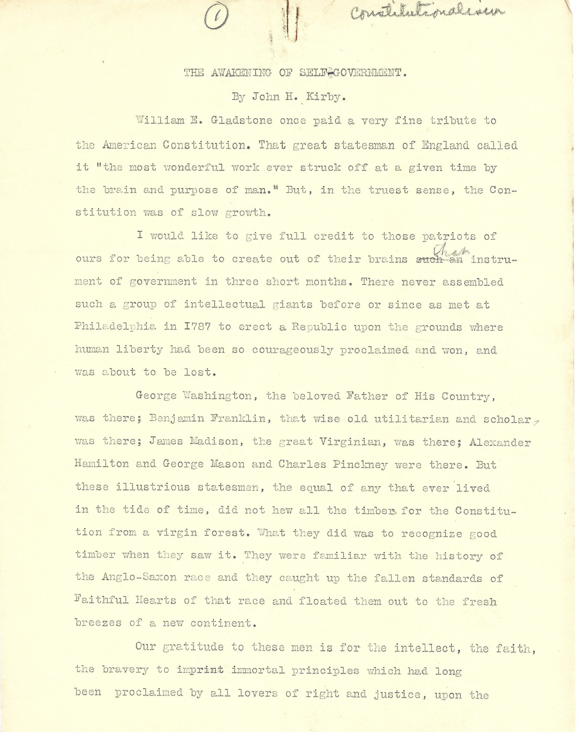 John H Kirby Writing " The Awakening of Self-Government"Tags