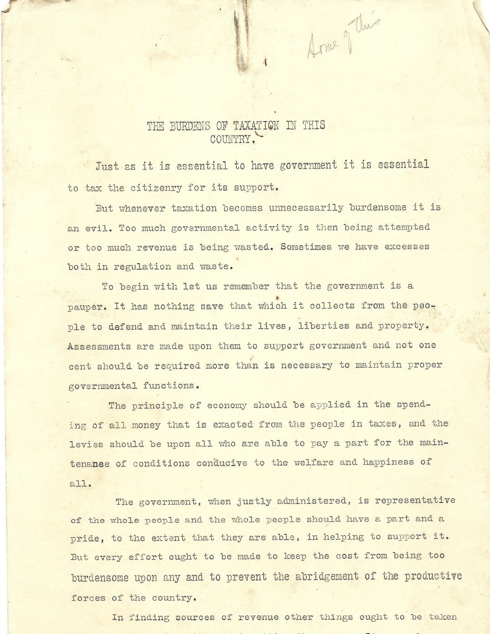 John H Kirby Writing "The Burdens of Taxation In This Country"Tags