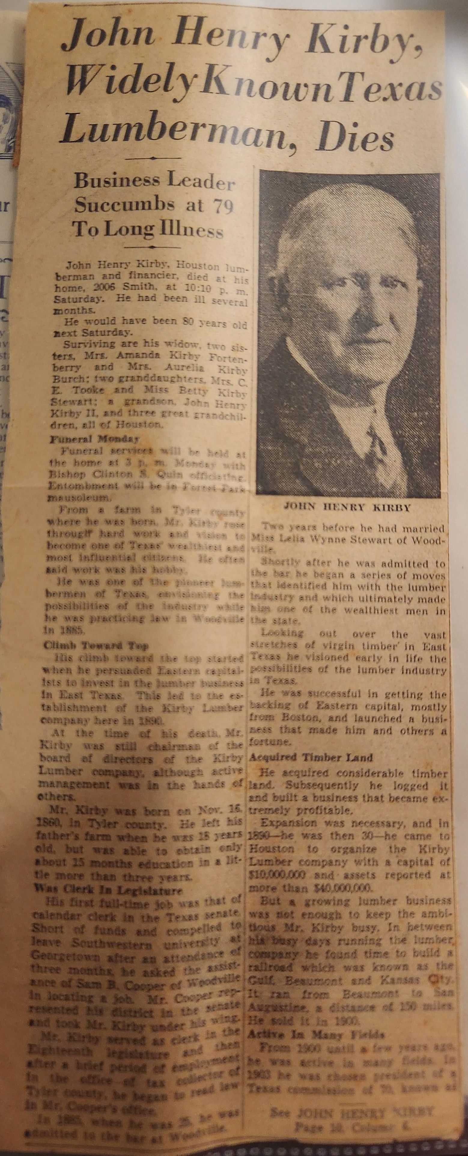 John Henry Kirby, Widely Known Texas Lumberman, Dies