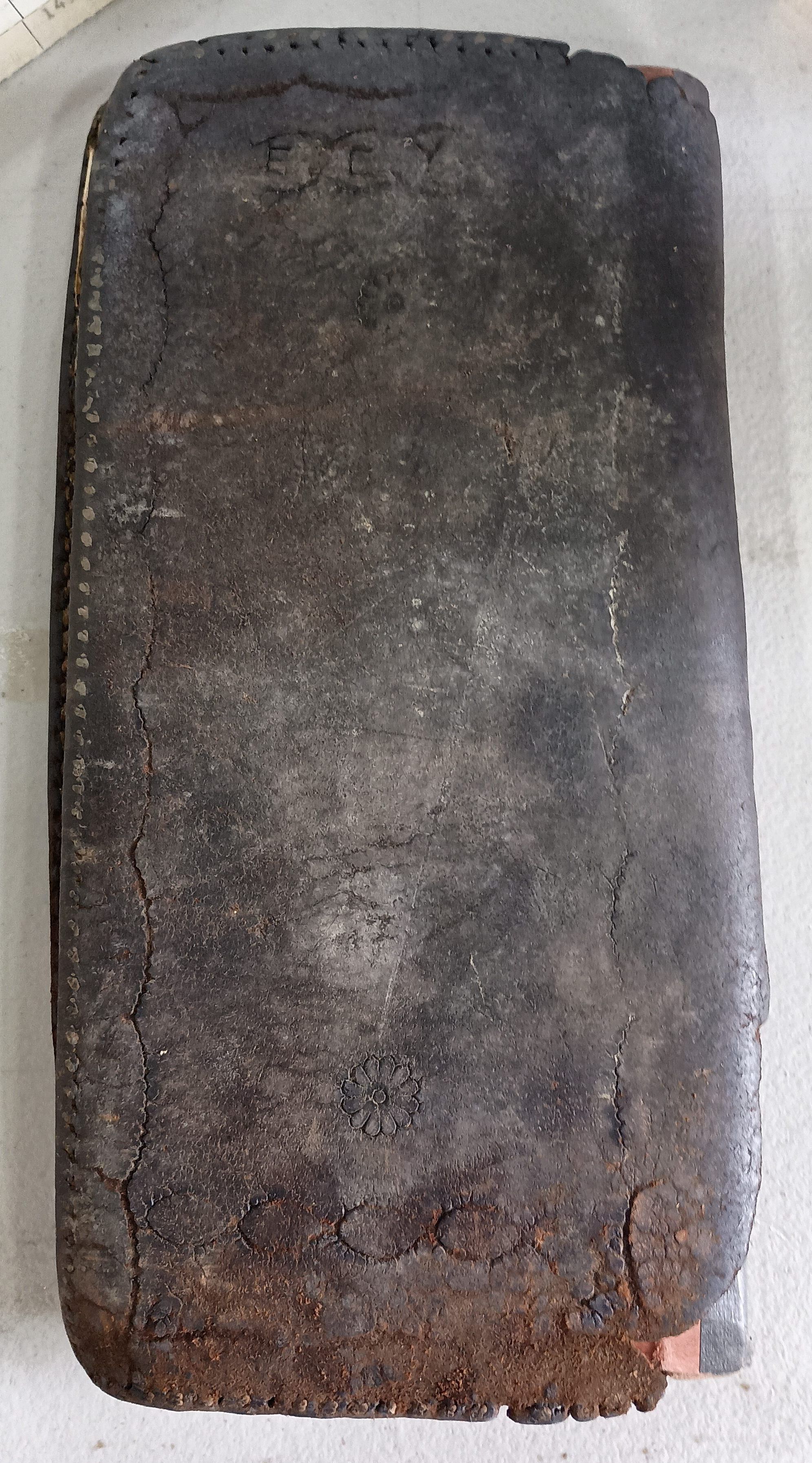 Leather log book owned by E. E. Yoksh - used on job at railroad