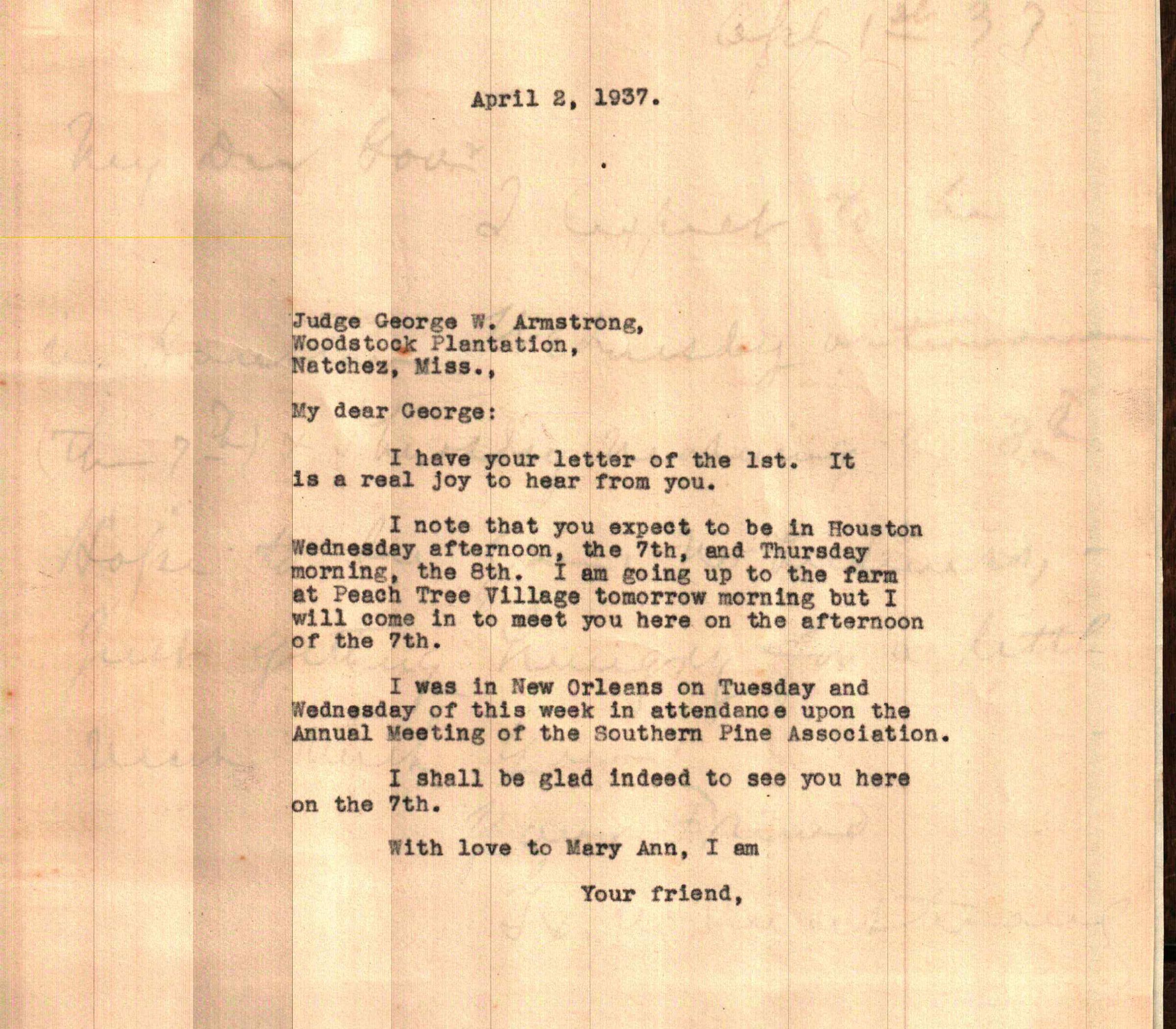 Letter from John Henry Kirby to George Armstrong dated April 2, 1937