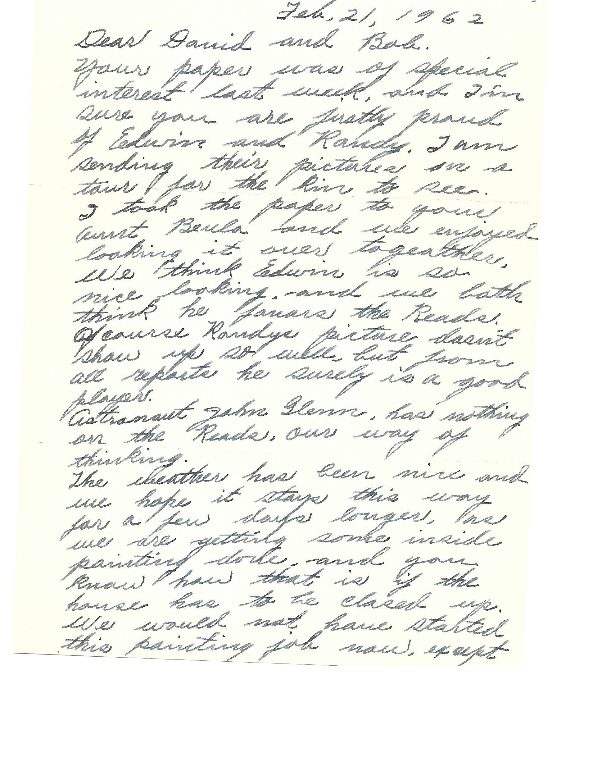 Letter to David and Bob Read from Aunt Gene February 21, 1962