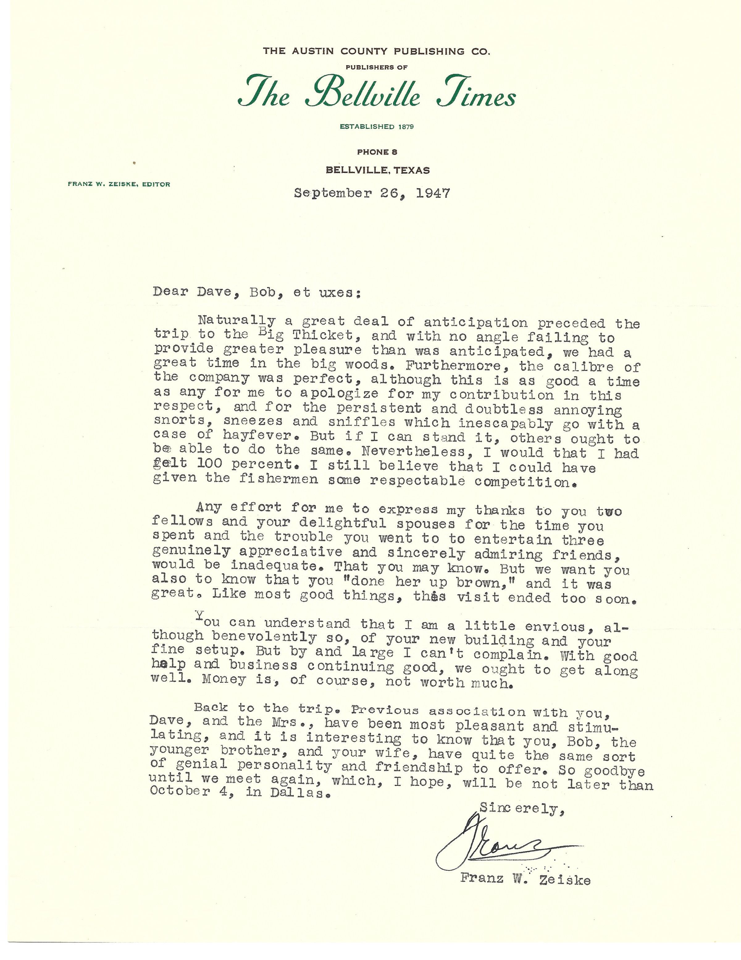 David Read, Franz Zeiske, Bellville, Texas, The Bellville Times, Fishing, ThanksCreated By