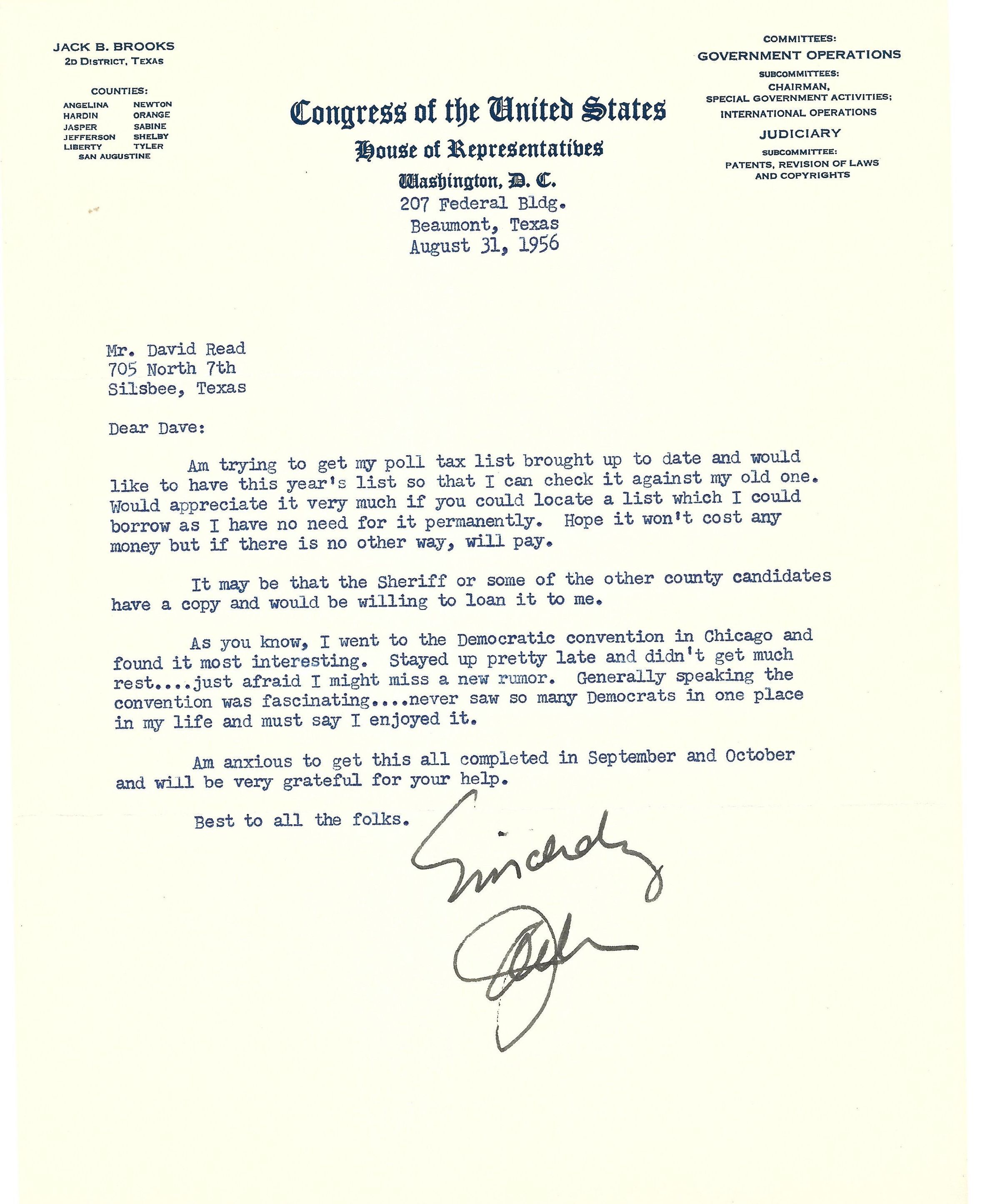 David Read, Jack Brooks, US House of Representatives, Poll Tax, Democratic National ConventionCreated By