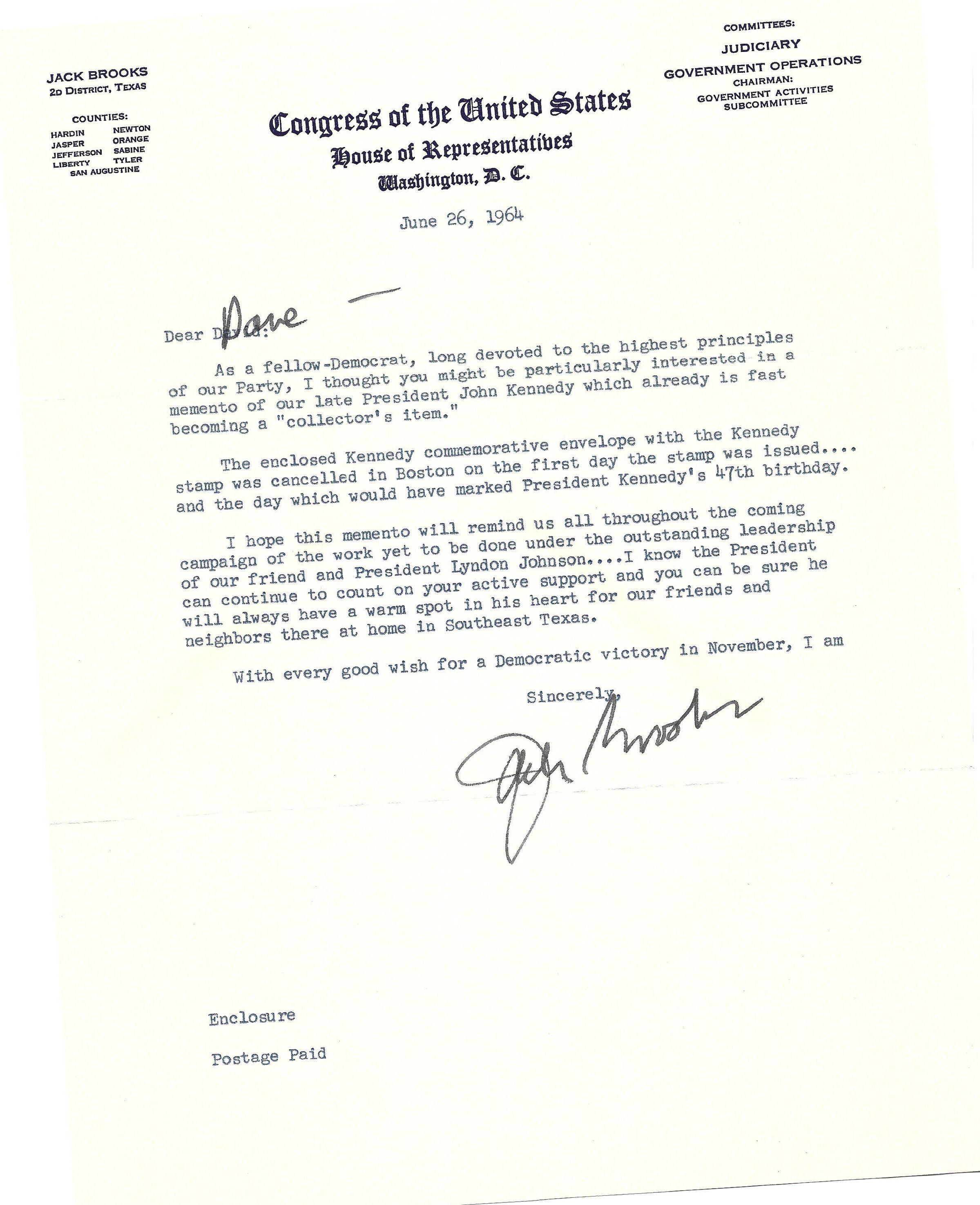 Letter to David Read from Jack Brooks june 26, 1964Tags