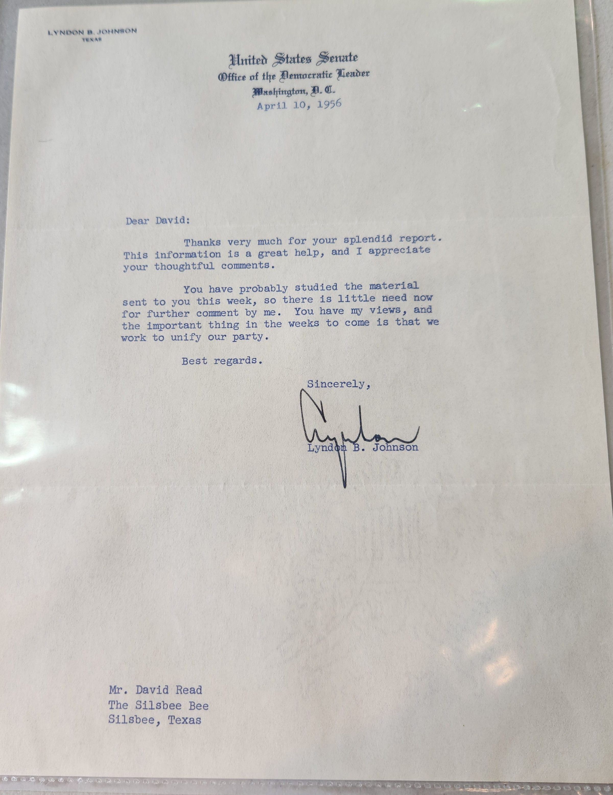 Letter to David Read from LBJ - Democrat Party Unification dated April 10, 1956Tags