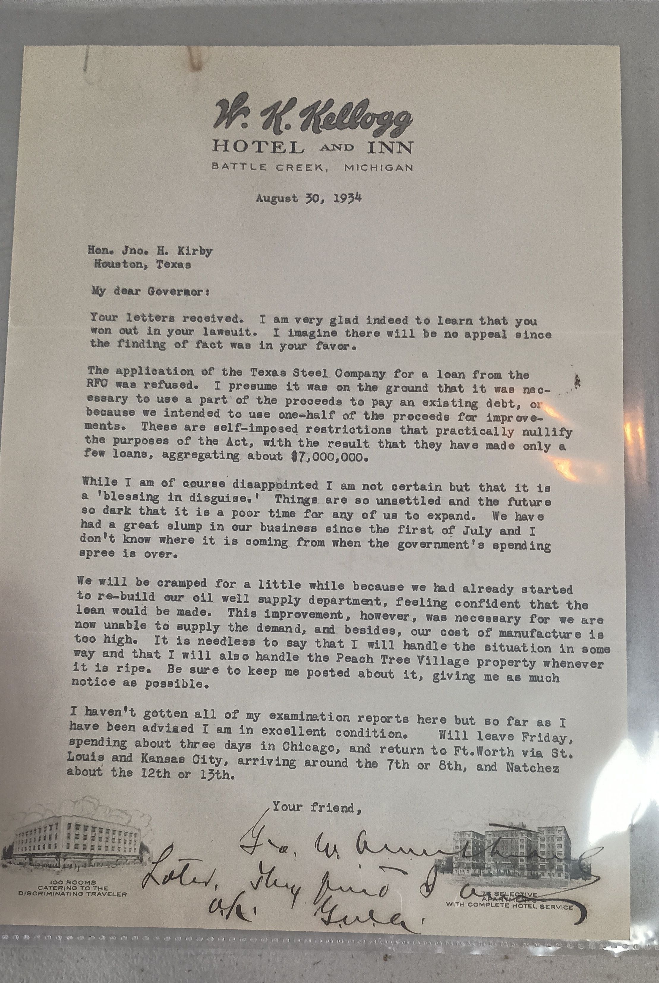Letter to John H Kirby from George Armstrong dated August 30, 1934Tags
