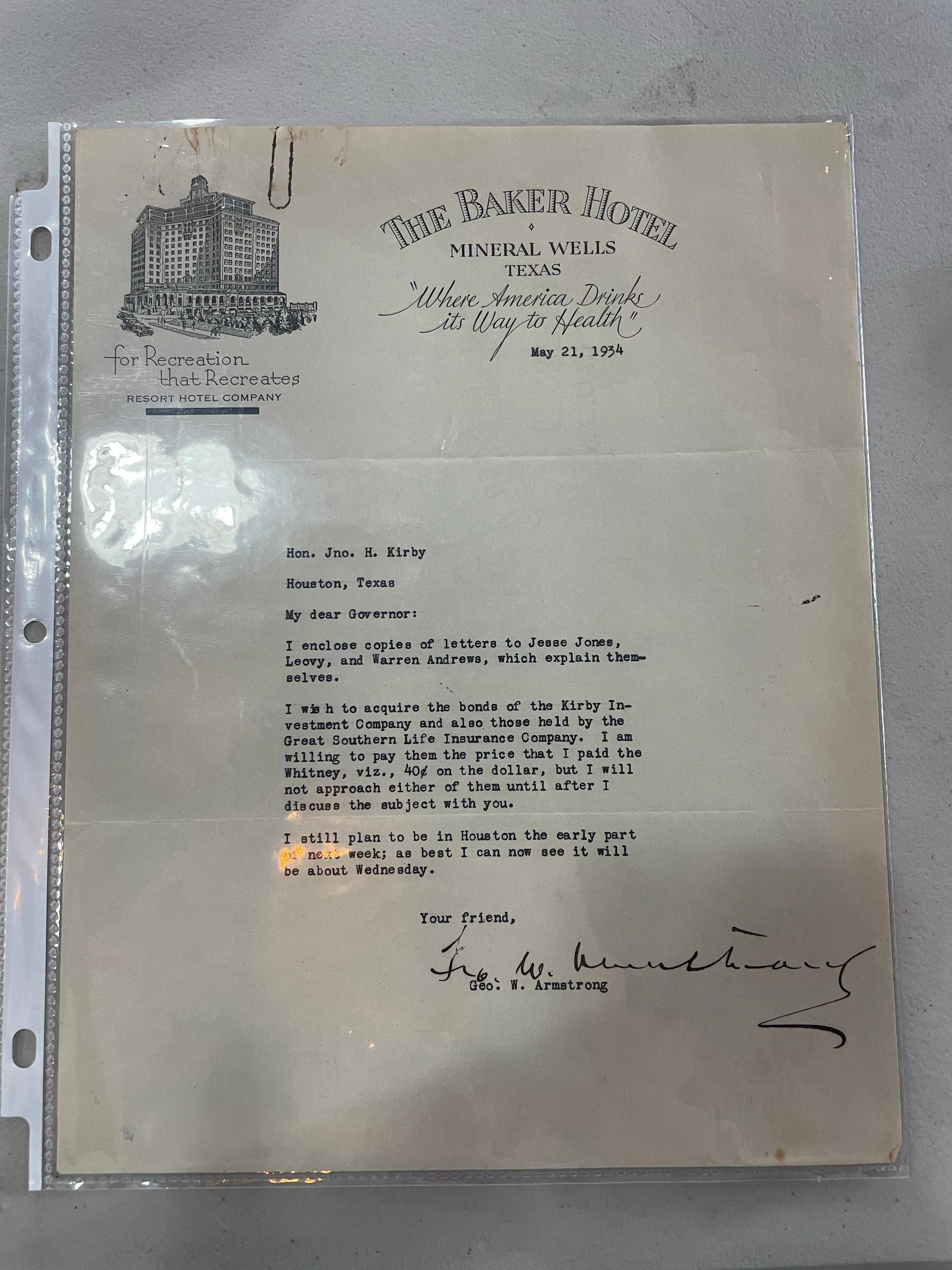 Letter to John Kirby from George Armstrong dated 5/21/1934