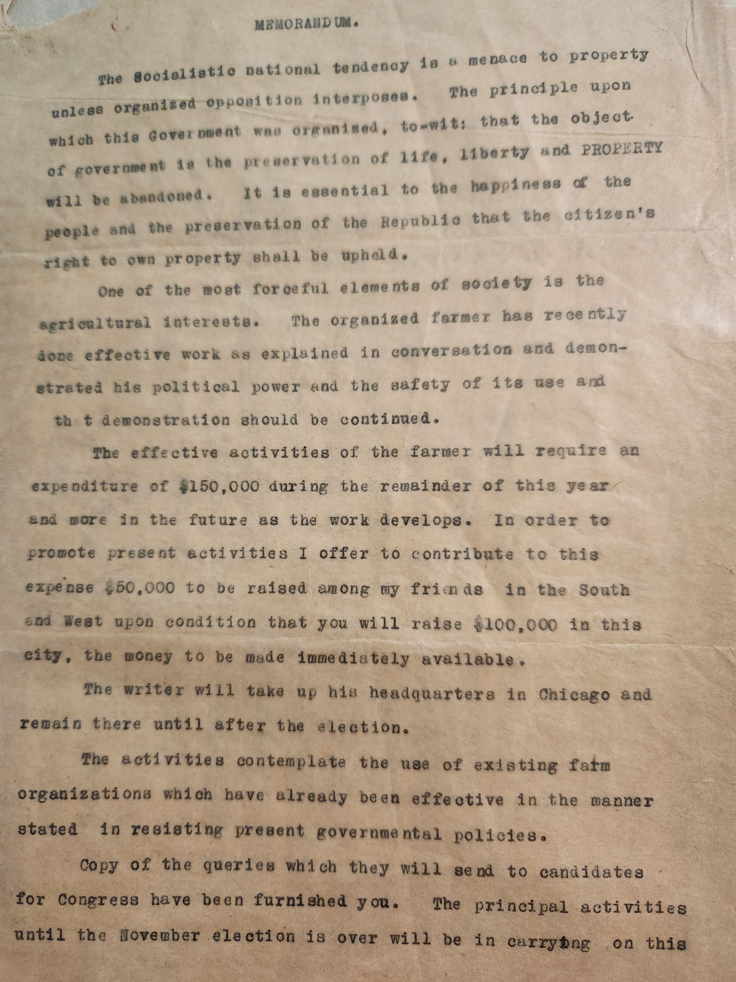 Memorandum by John Henry Kirby - Socialistic National TendencyTags