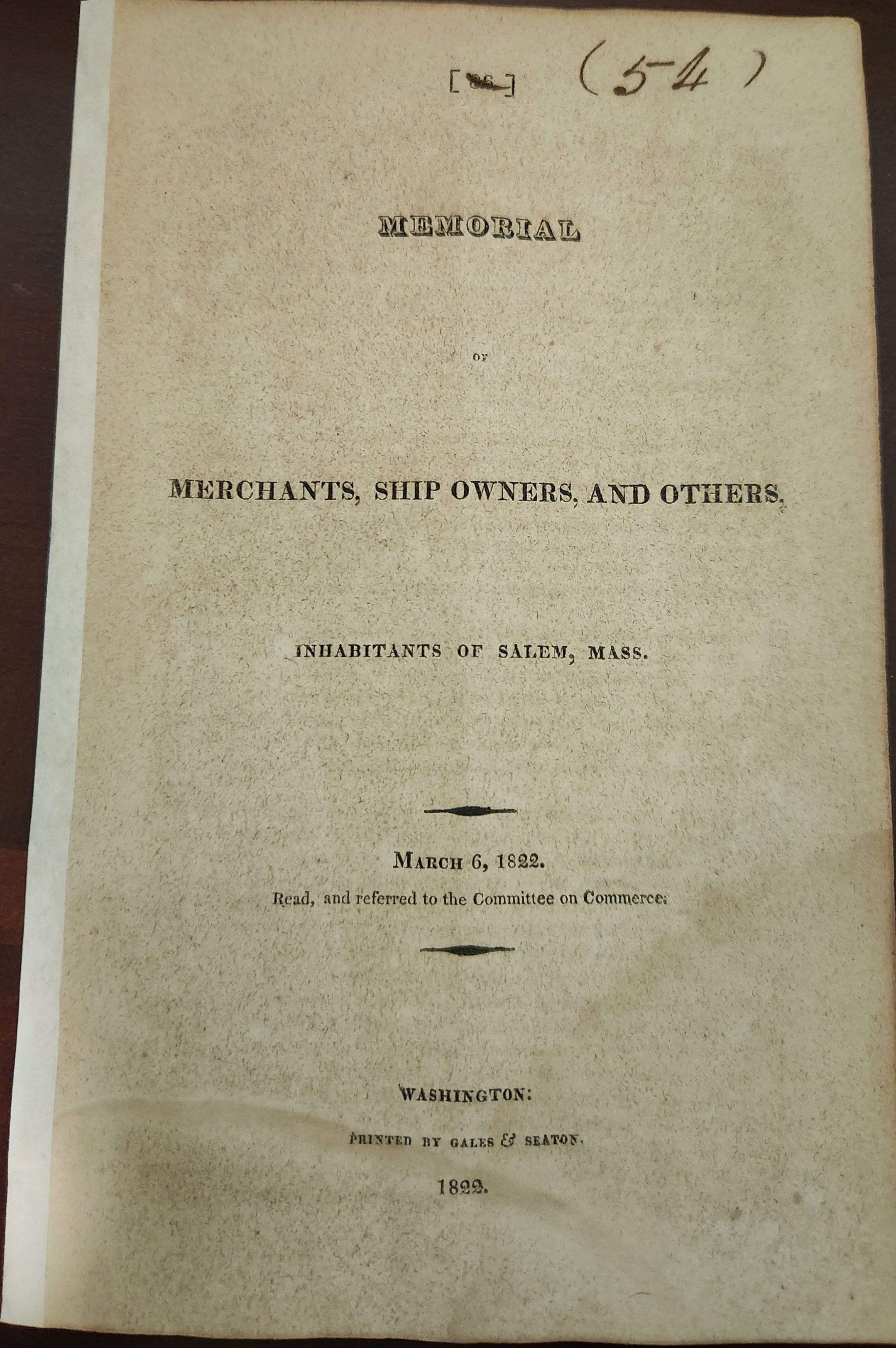 Memorial - Merchants, Ship Owners, and Others - Nathaniel Silsbee March 6, 1822Tags