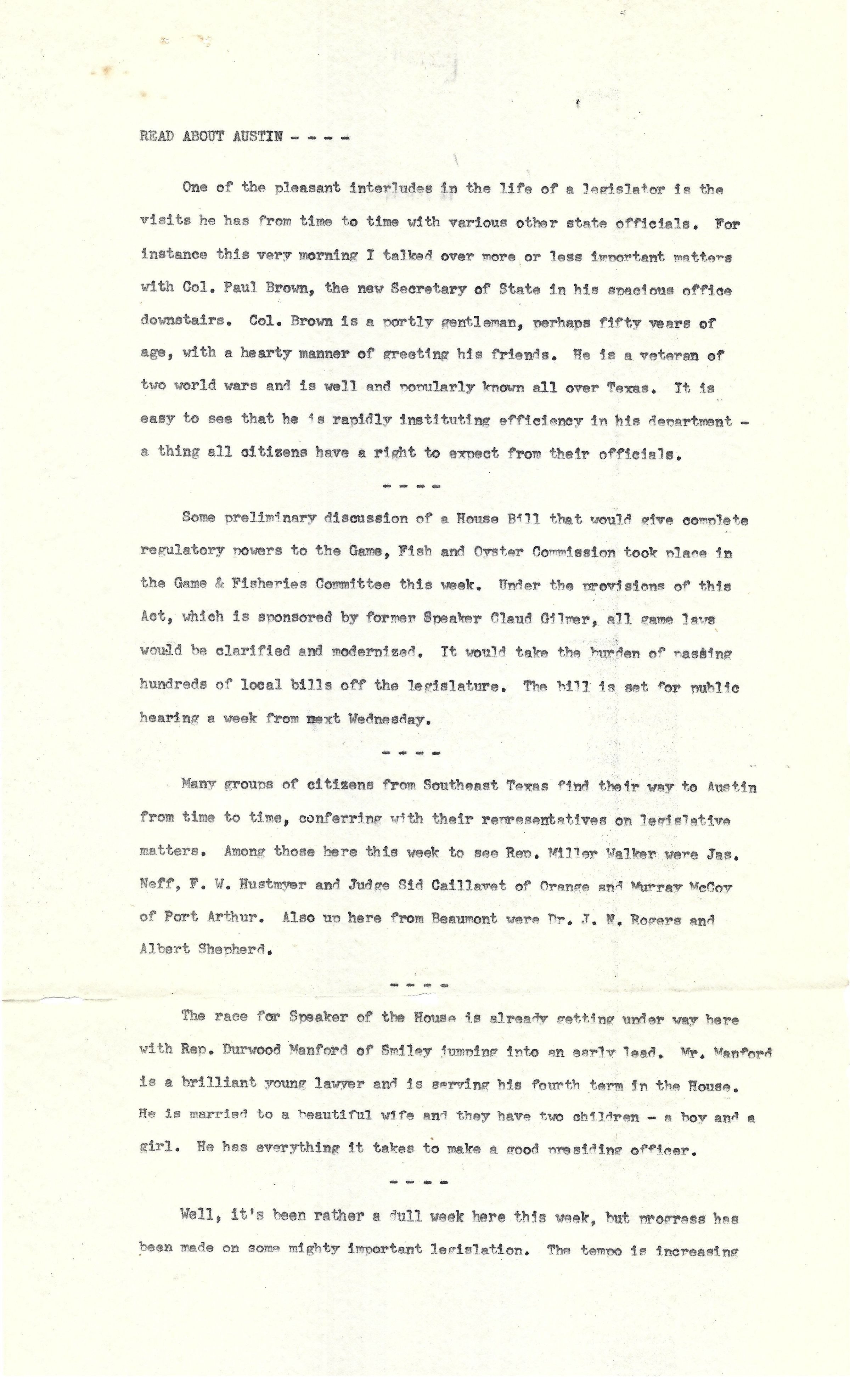 News Article - "Read About Austin" David Read February 6,1947Tags