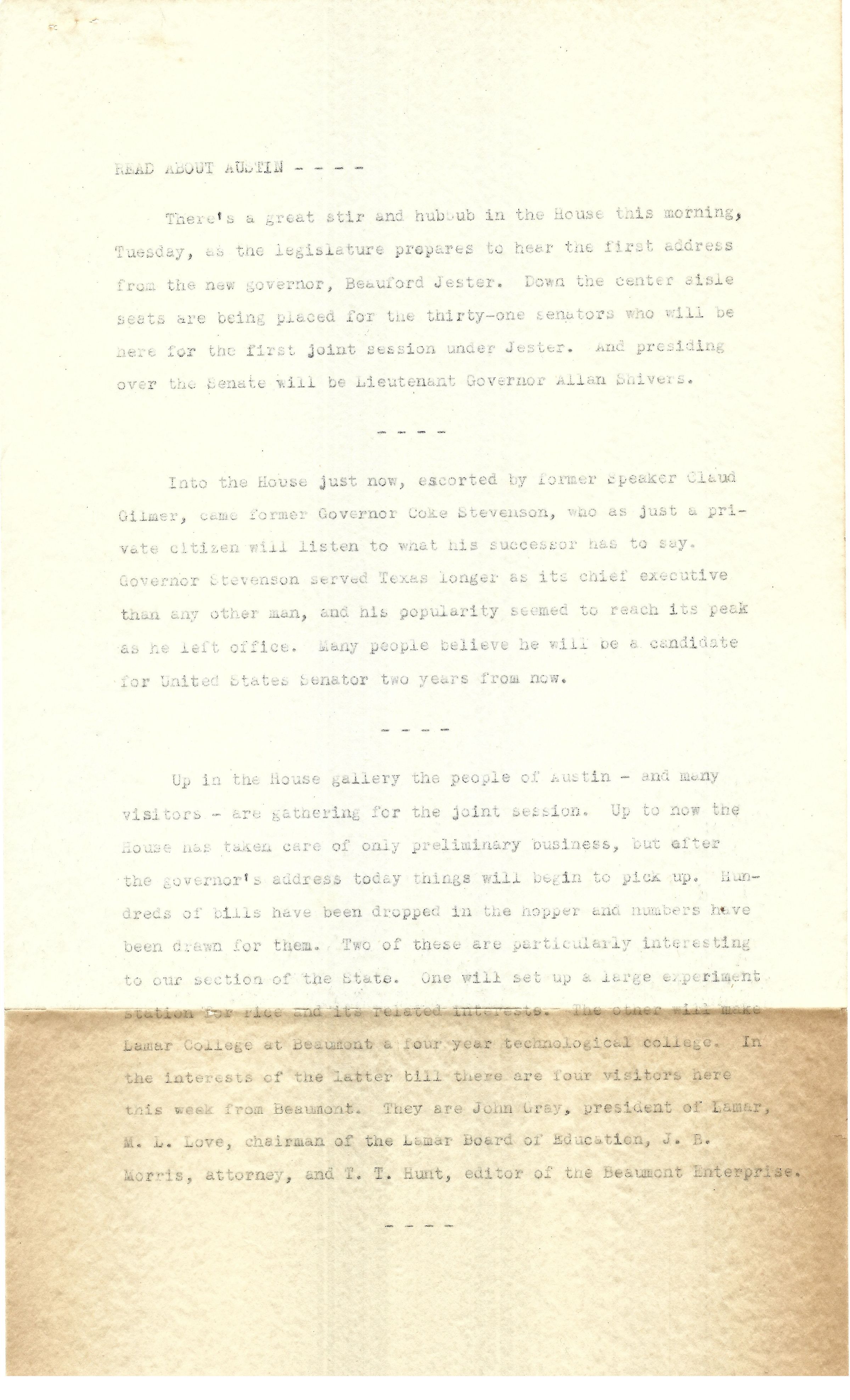 News Article - "Read About Austin" David Read January 28, 1947Tags
