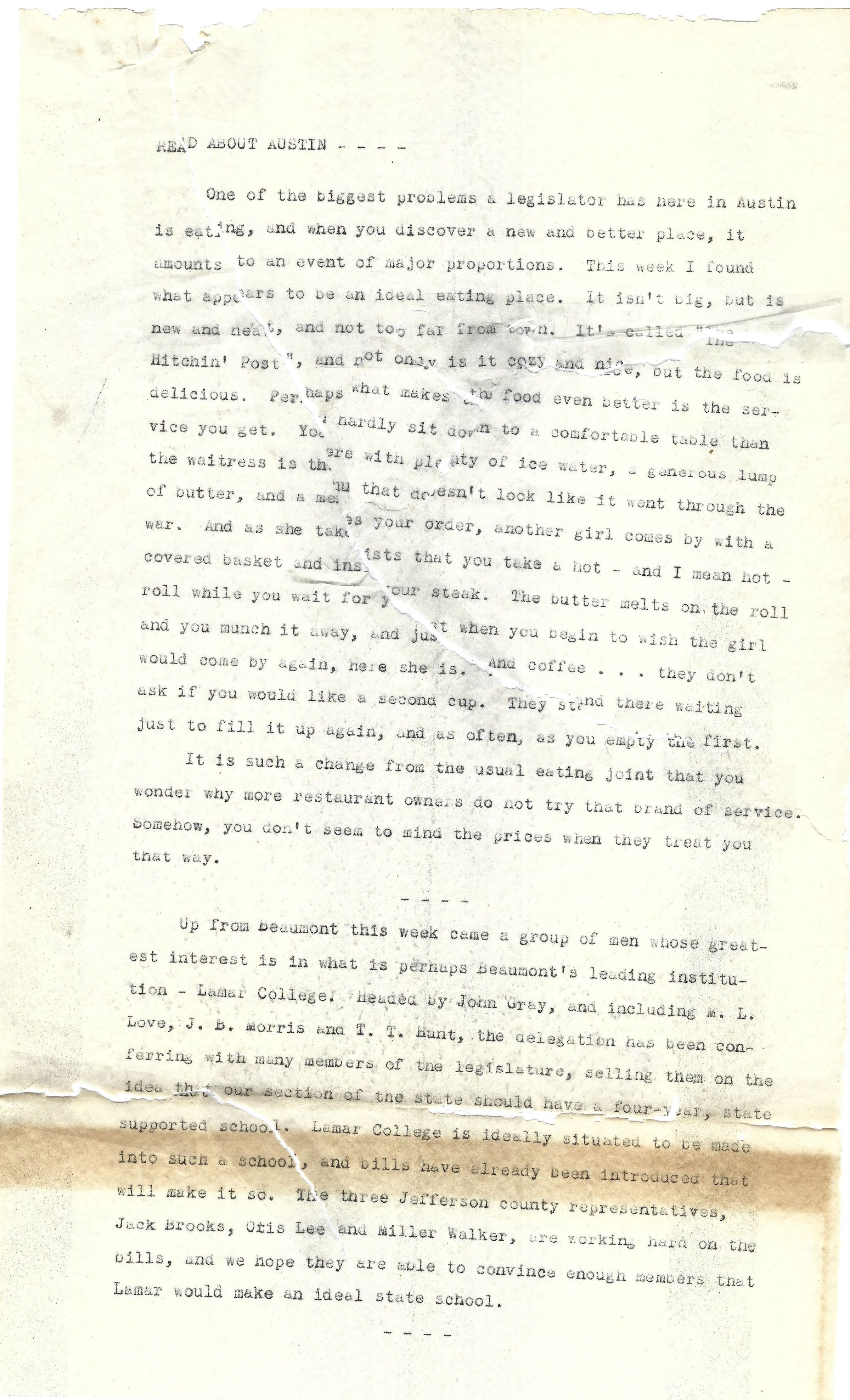 News Article - "Read About Austin" David Read January 29, 1947Tags