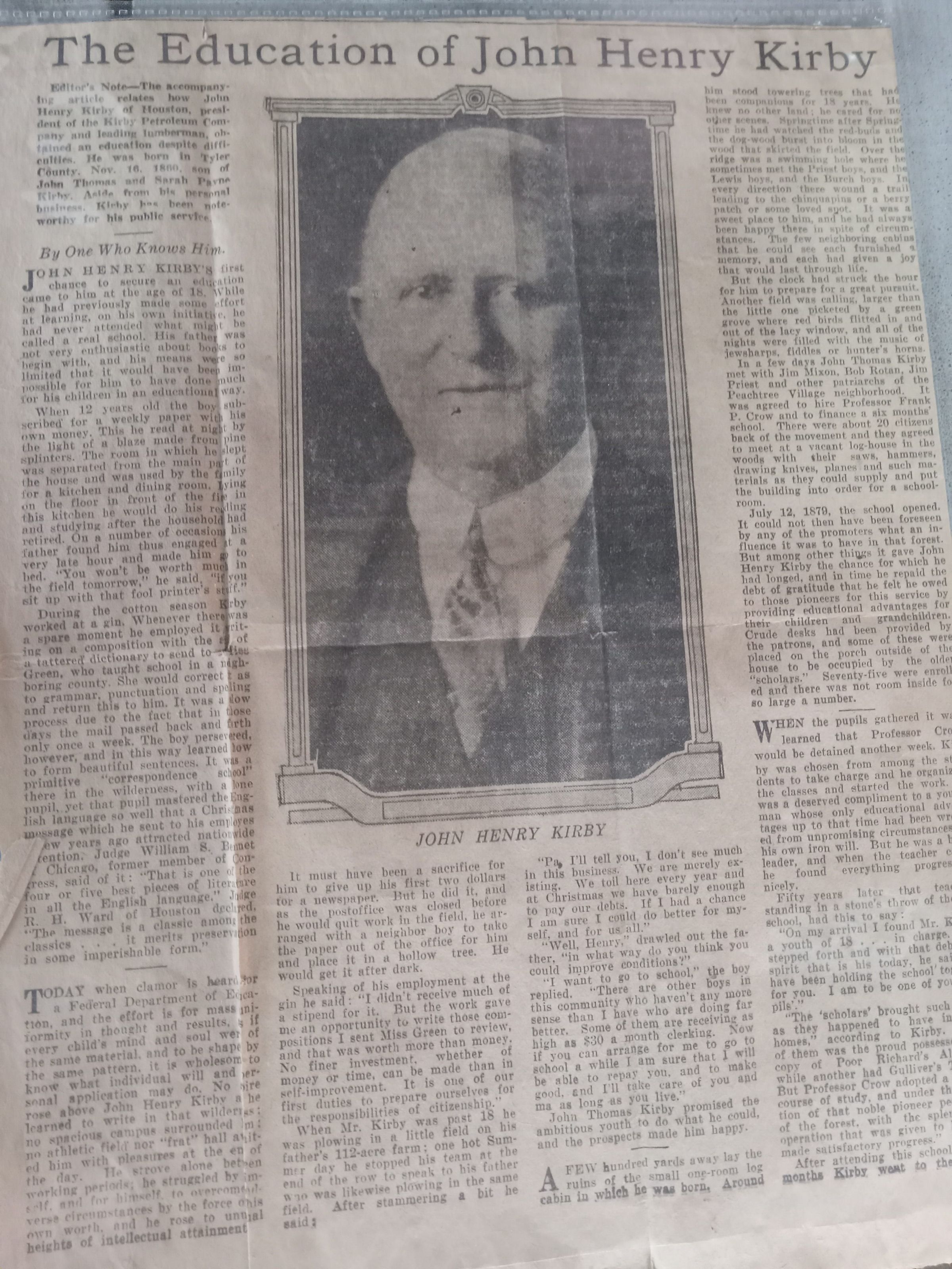 News Article "The education of John Henry Kirby"