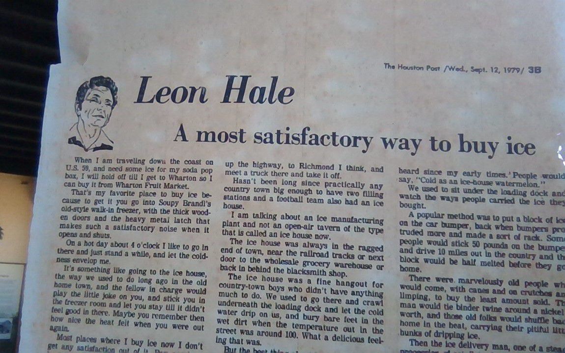 Newspaper article by Leon Hale "A Most Satisfactory Way to Buy Ice" dated September 12, 1979Tags