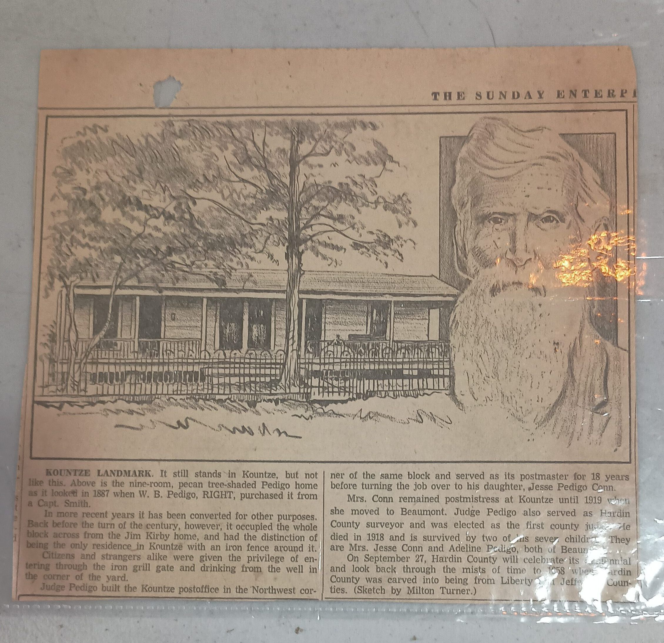 Newspaper article on WB Pedigo home in Kountze