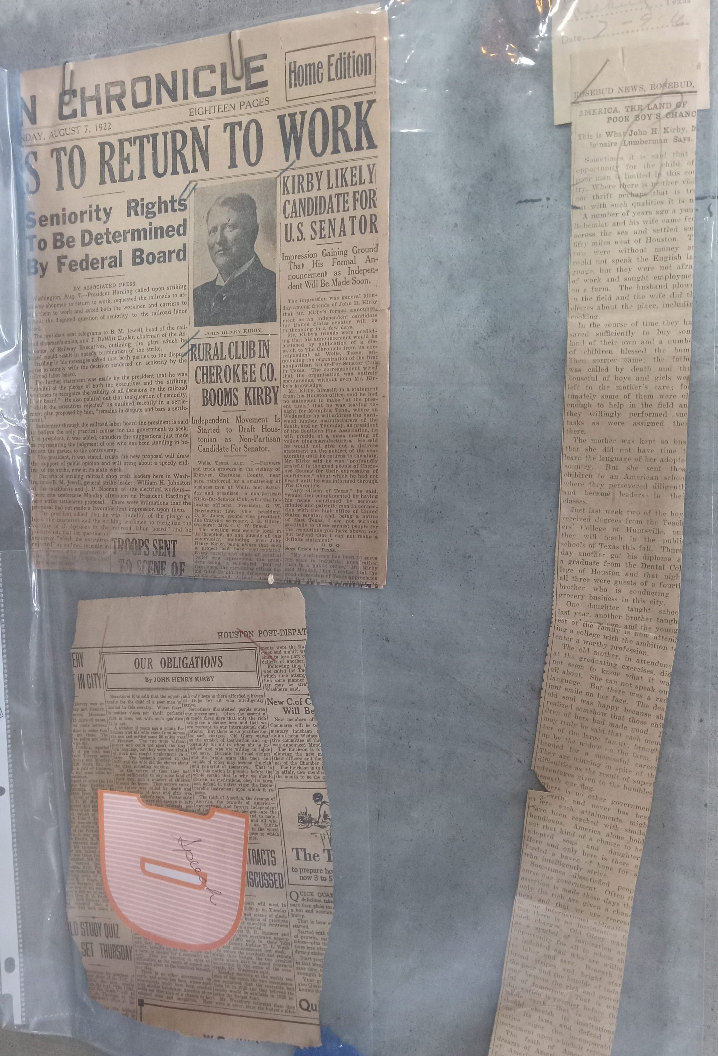 Newspaper Clippings - Kirby Likely Candidate for U S Senator August 7, 1922