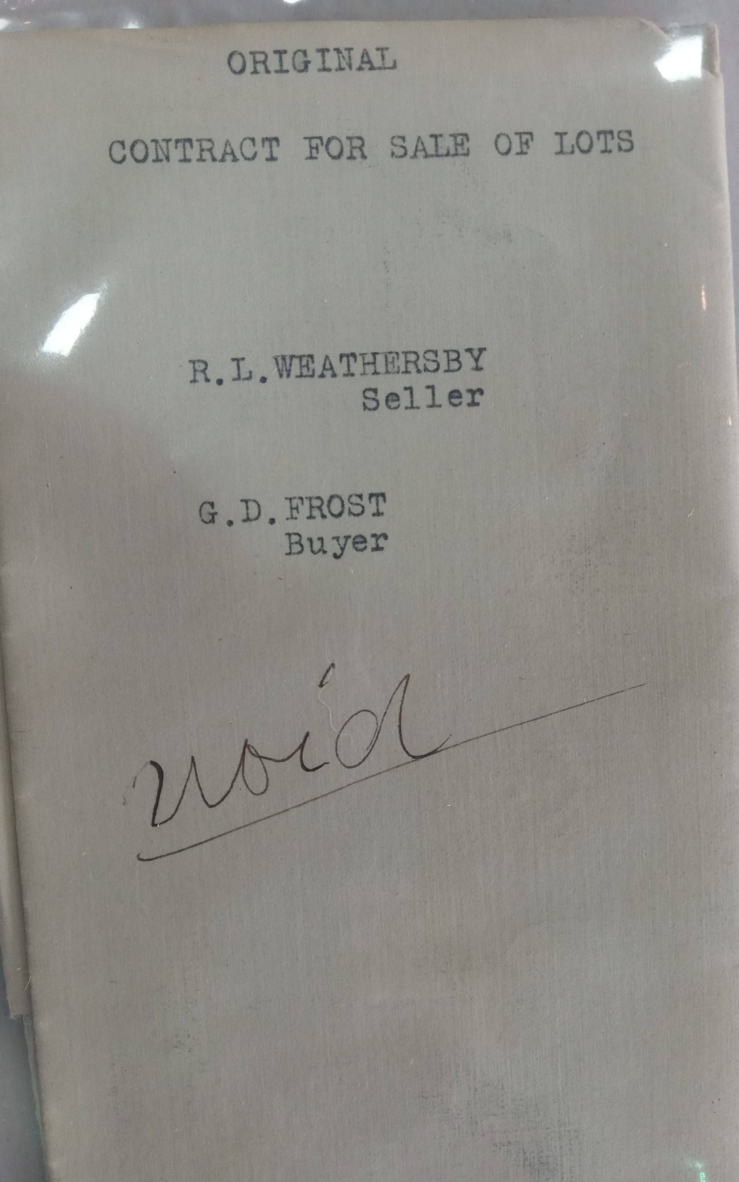 Original Contract for Sale of Lots from R L Weathersby to G D Frost - VoidedTags
