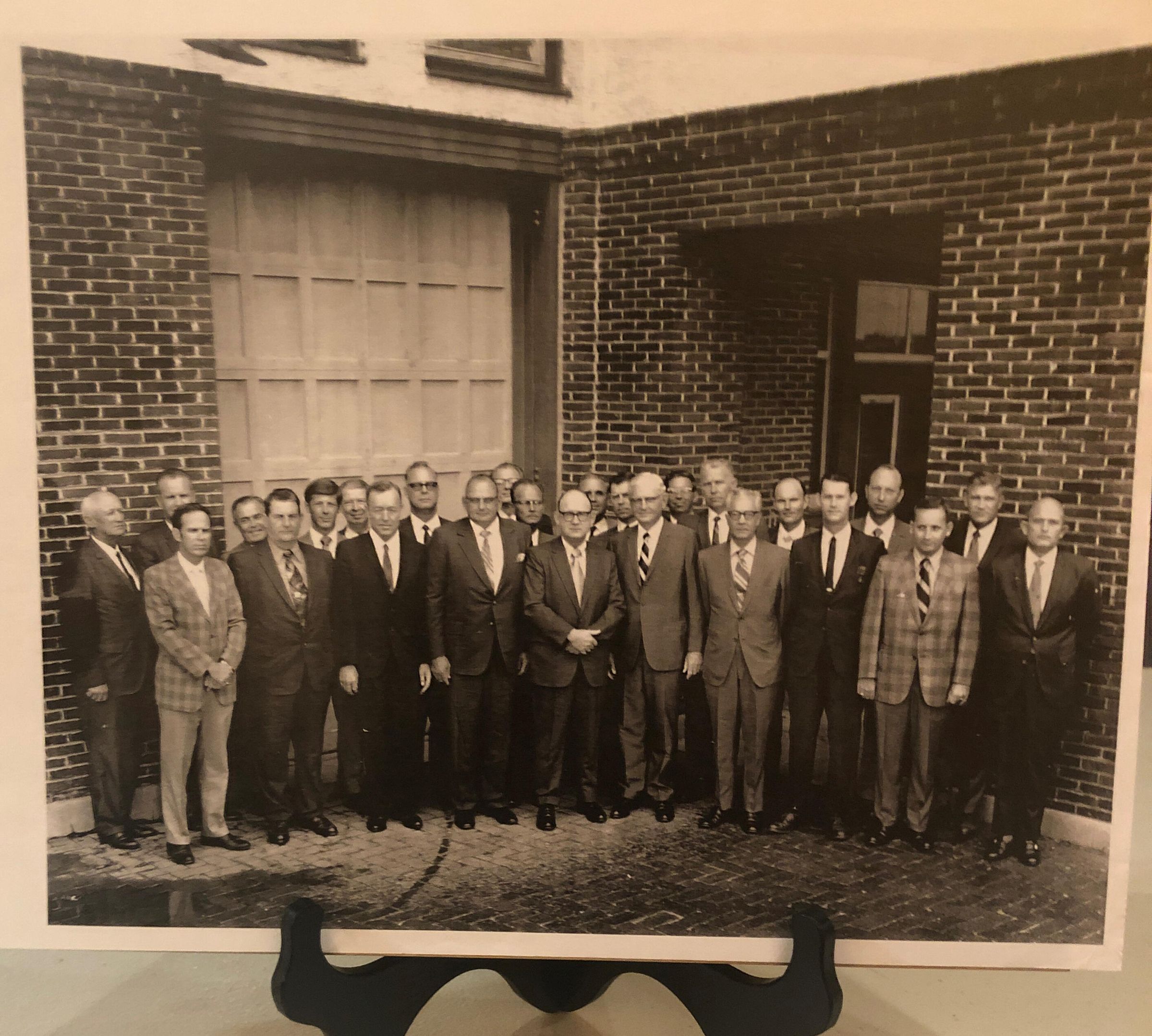 A black and white photo of 25 Railroad staff members.Photograph Details