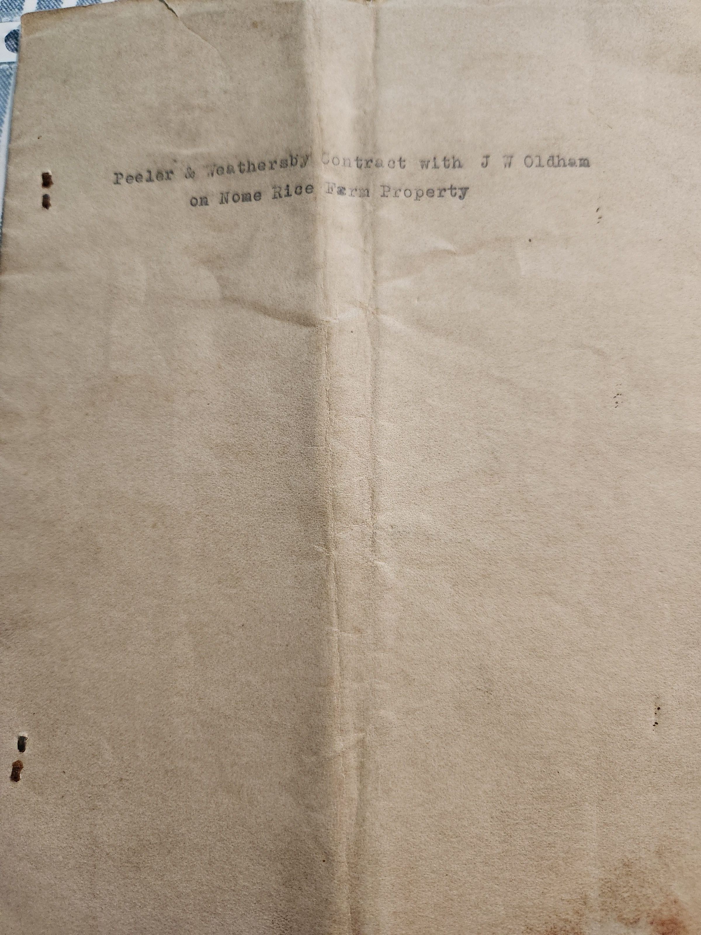 Peeler & Weathersby Lease Contract with J W Oldham on Nome Rice Farm Property dated February 1921 ending December 31, 1921Tags