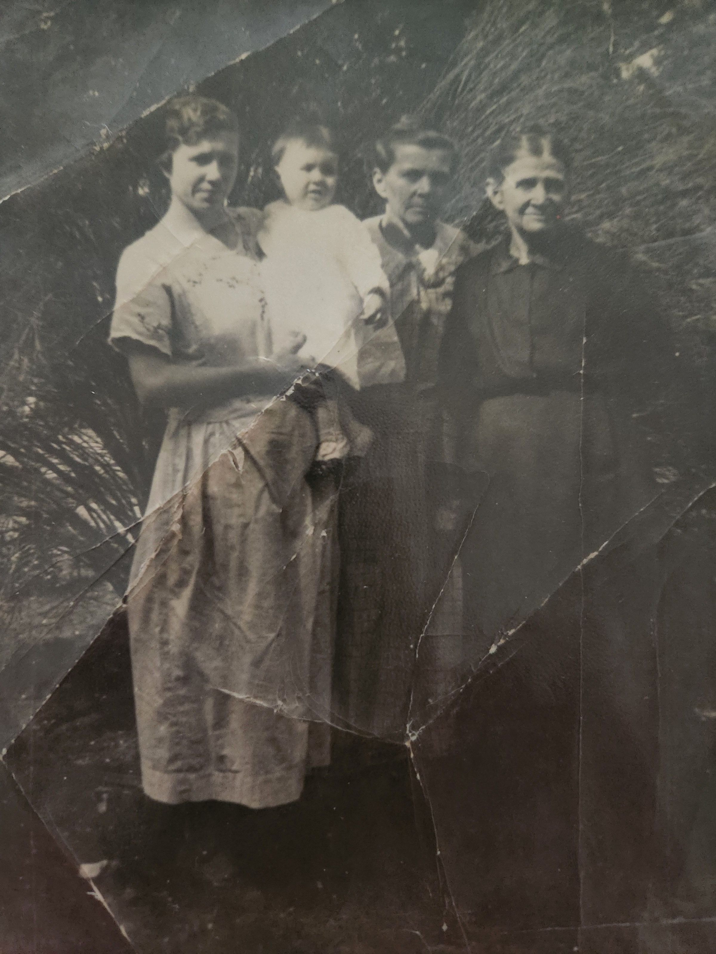 Photo of Alice Allen, Della Littlepage, Beryl Barnes, and baby Lucille BarnesTags