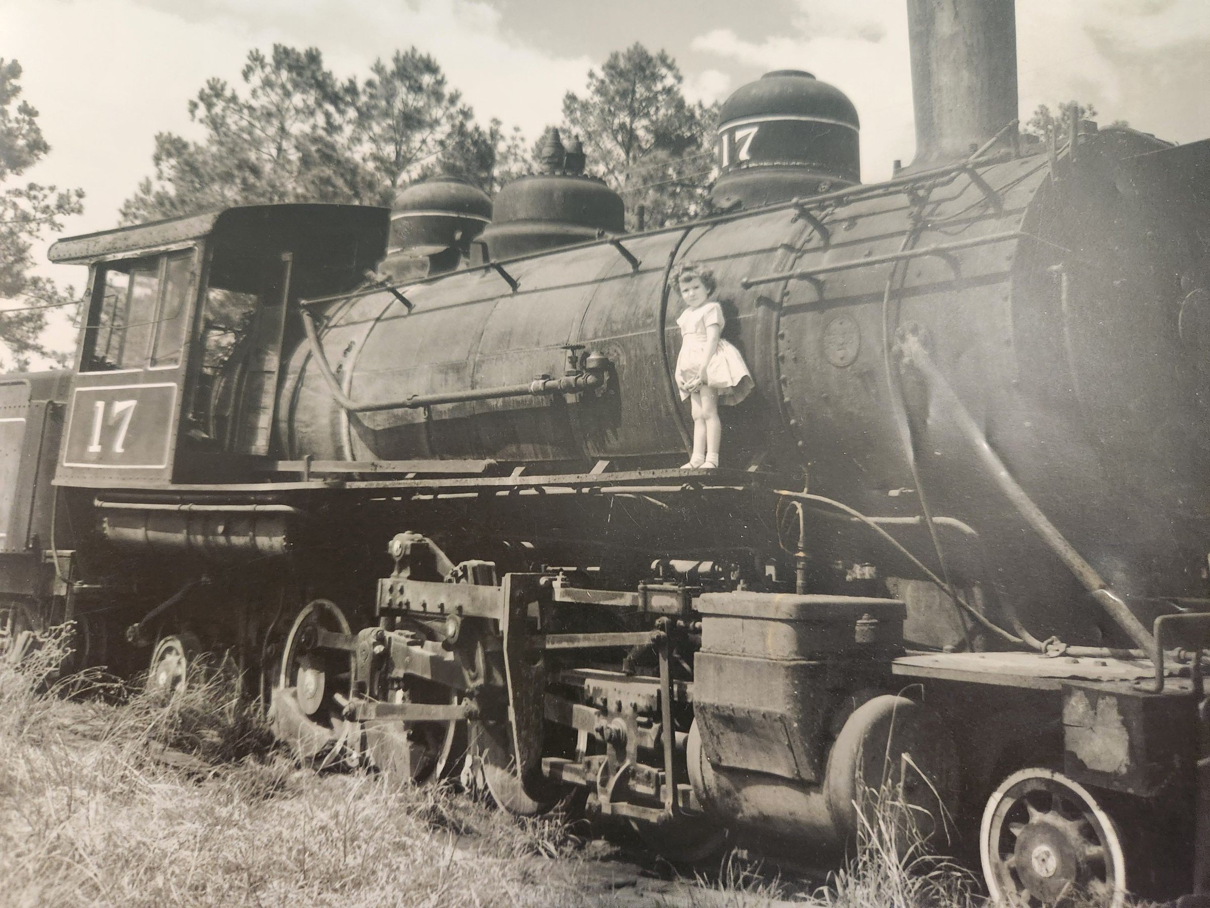 Photo of Engine 17 with Young Girl Standing on the Engine