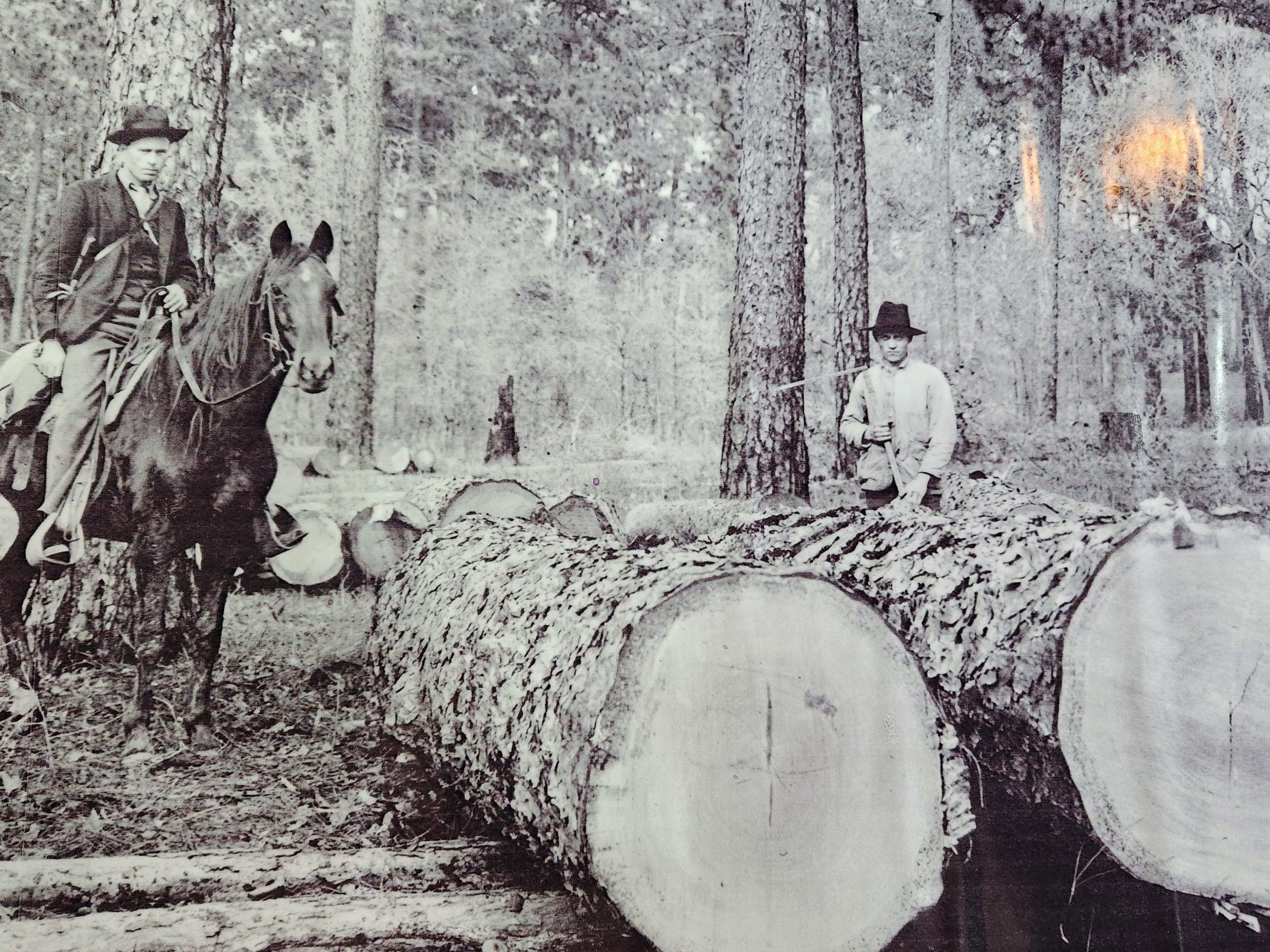 Photo of Logs, Man on Horse, and Logger