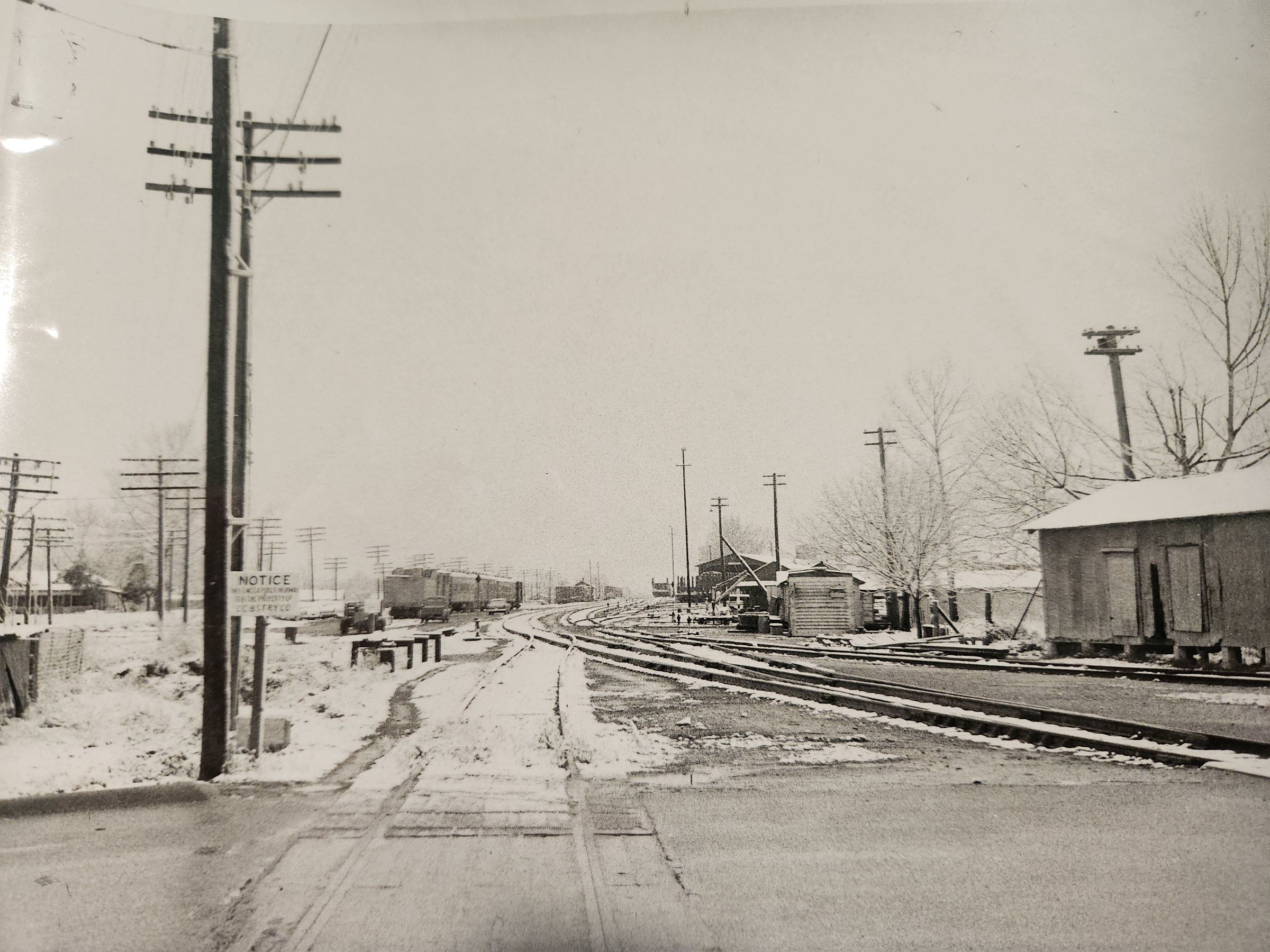 Photo of Train Tracks and Rail Cars with Snow