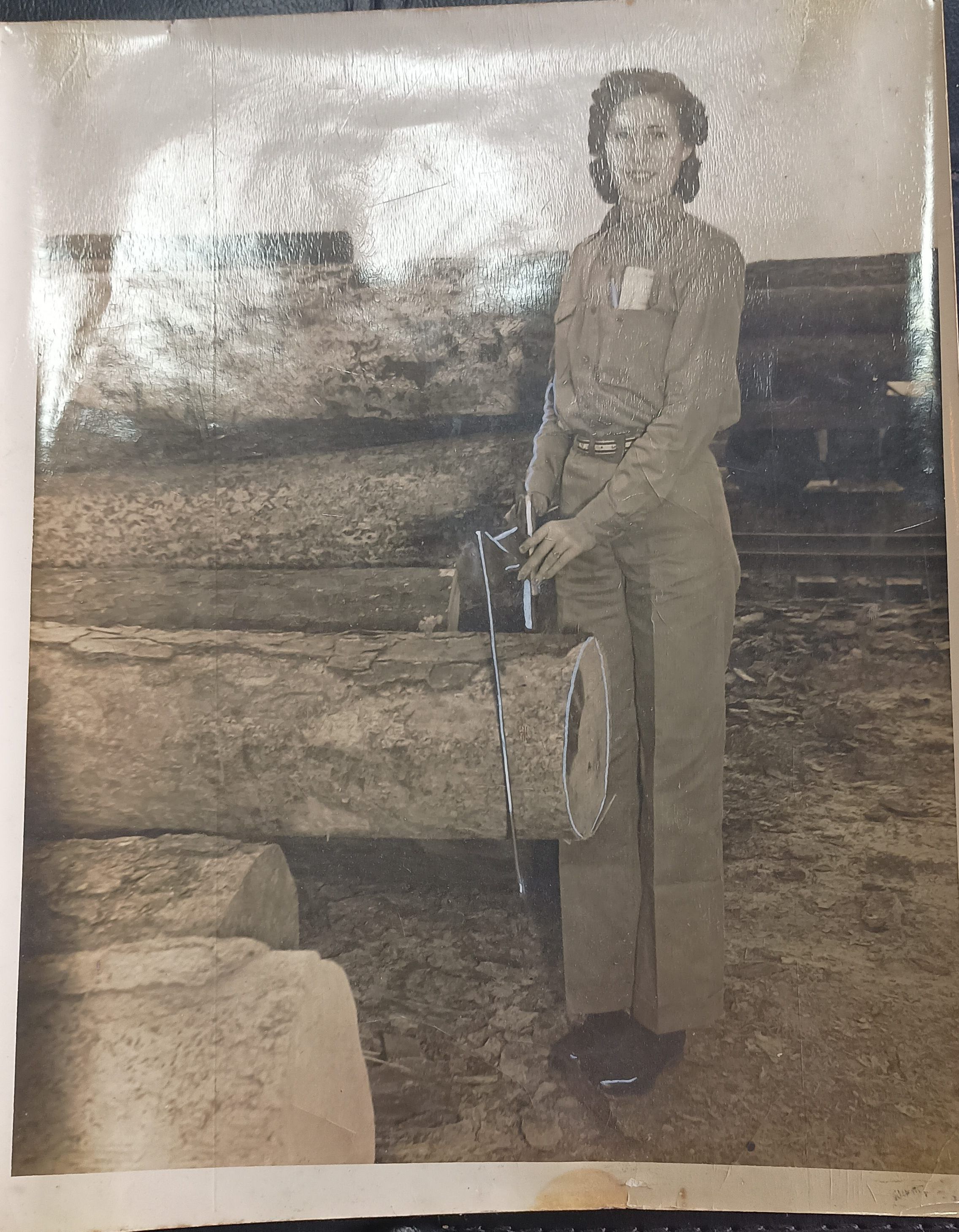 Marked "Aunt Louise" on back with note to touch up logs and scaling device to bring out