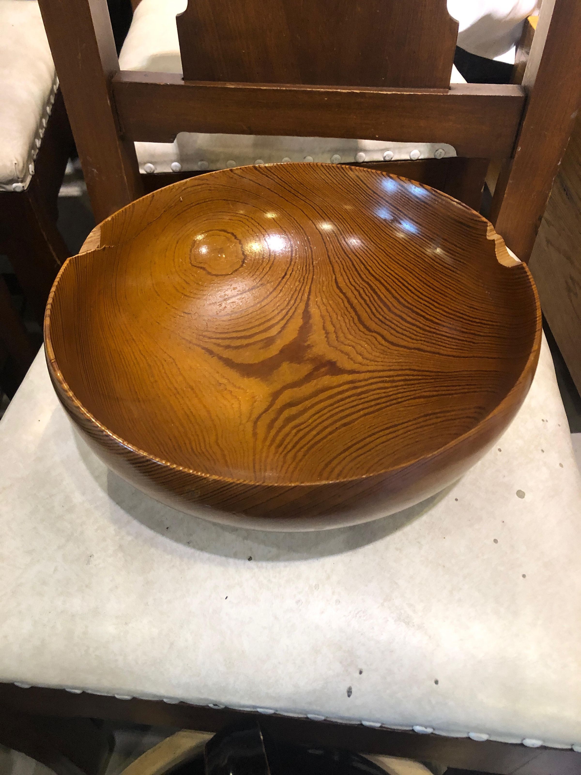 The pinewood of this bowl was salvaged from the dismantled wooden underground oil store tank built in Silsbee, TX by Santa Fe Railroad Co. in the year 1903 - dismantled in 1954 presumed age of tree when cut over 400 years.