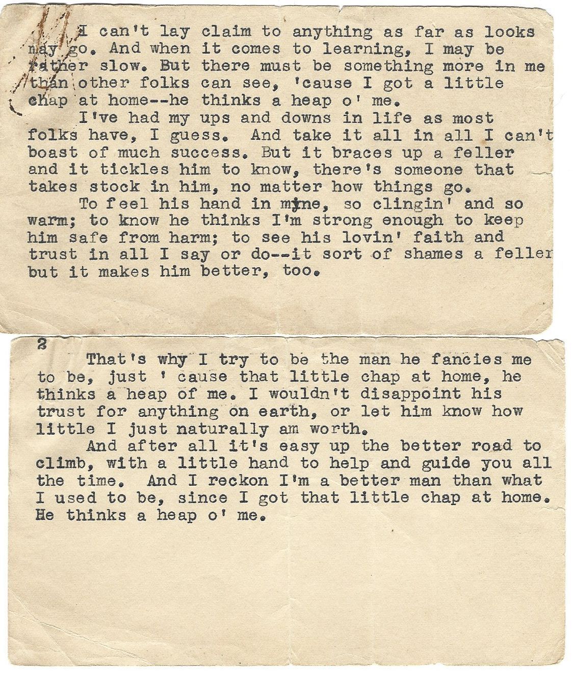 Little chap at home -- he thinks a heap o' meCreated By