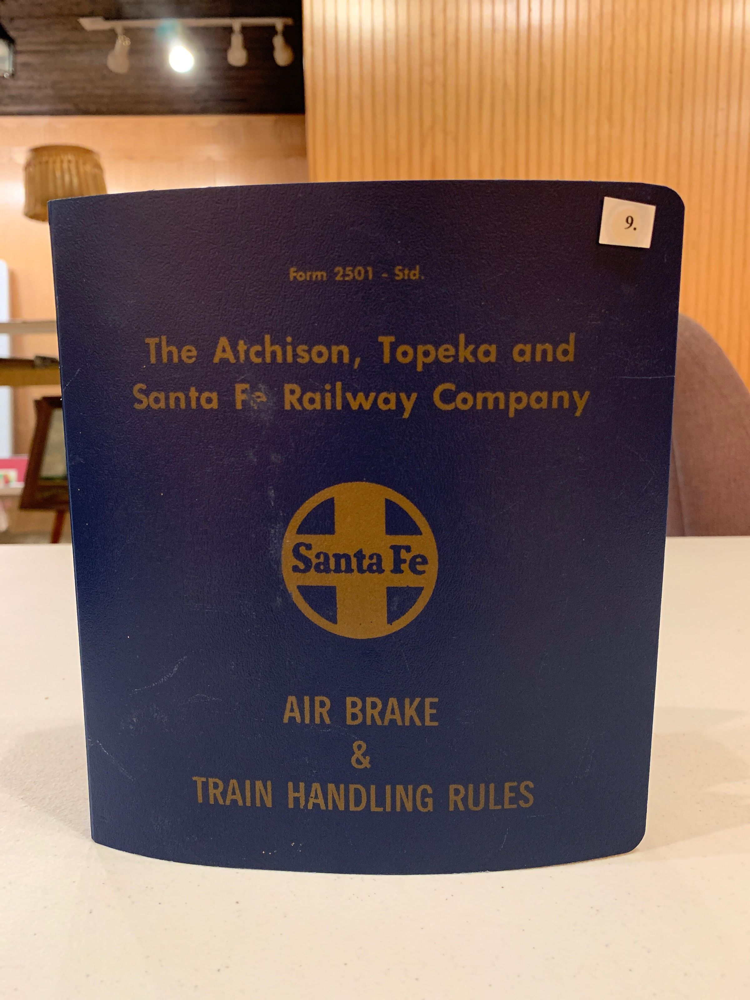 A blue hard plastic looseleaf notebook with six sections explaining the rules of using air brakes and trainsCollection