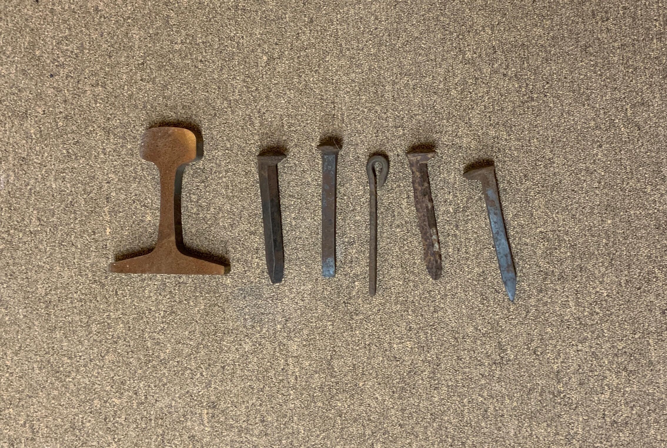 Six kinds of carbon steel \\ Abandoned spikes and tools used in 1900s Railroad in Silsbee, TexasCollection