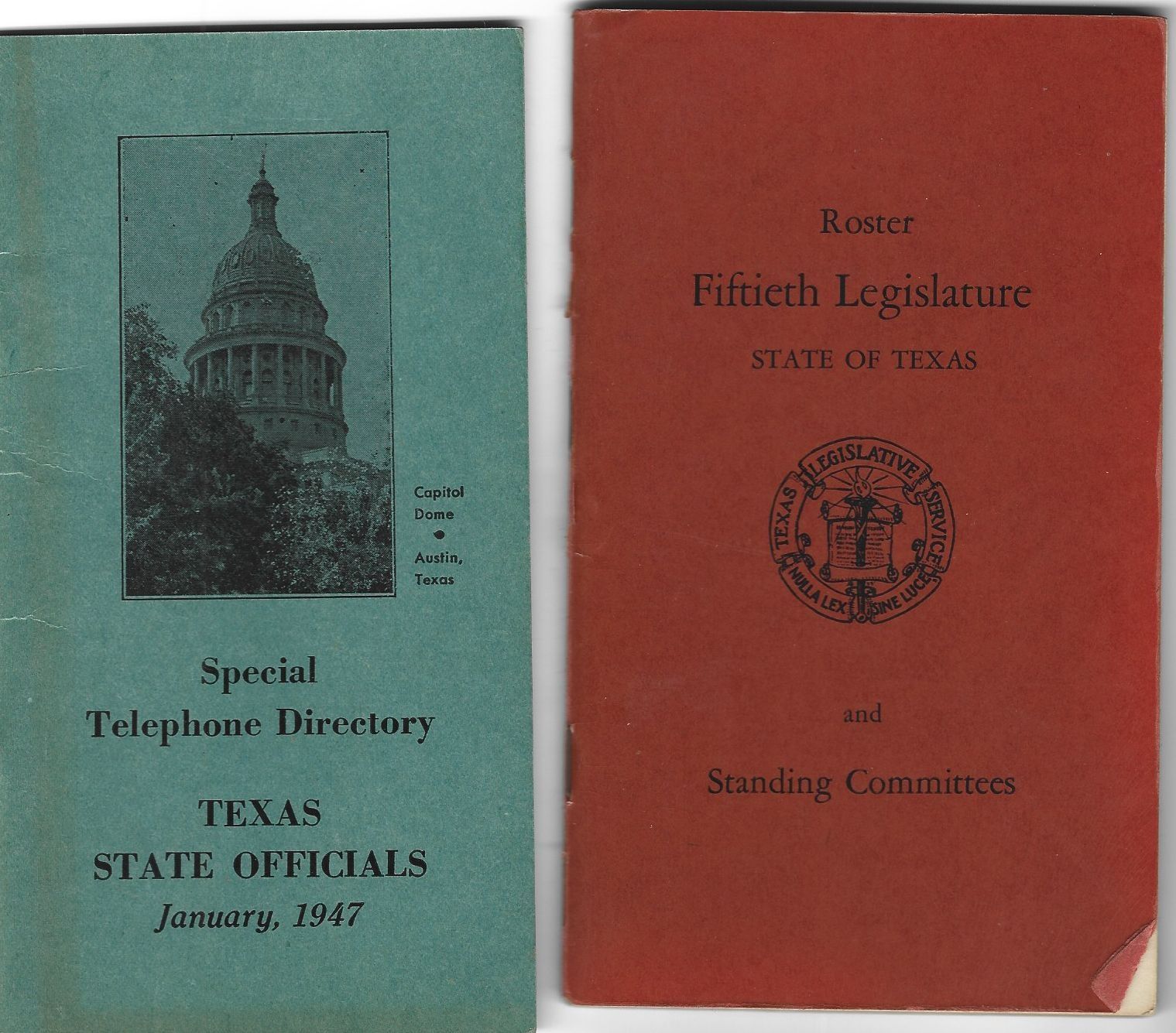 Roster and Special Telephone Directory Fiftieth Legislature State of Texas 1947Tags