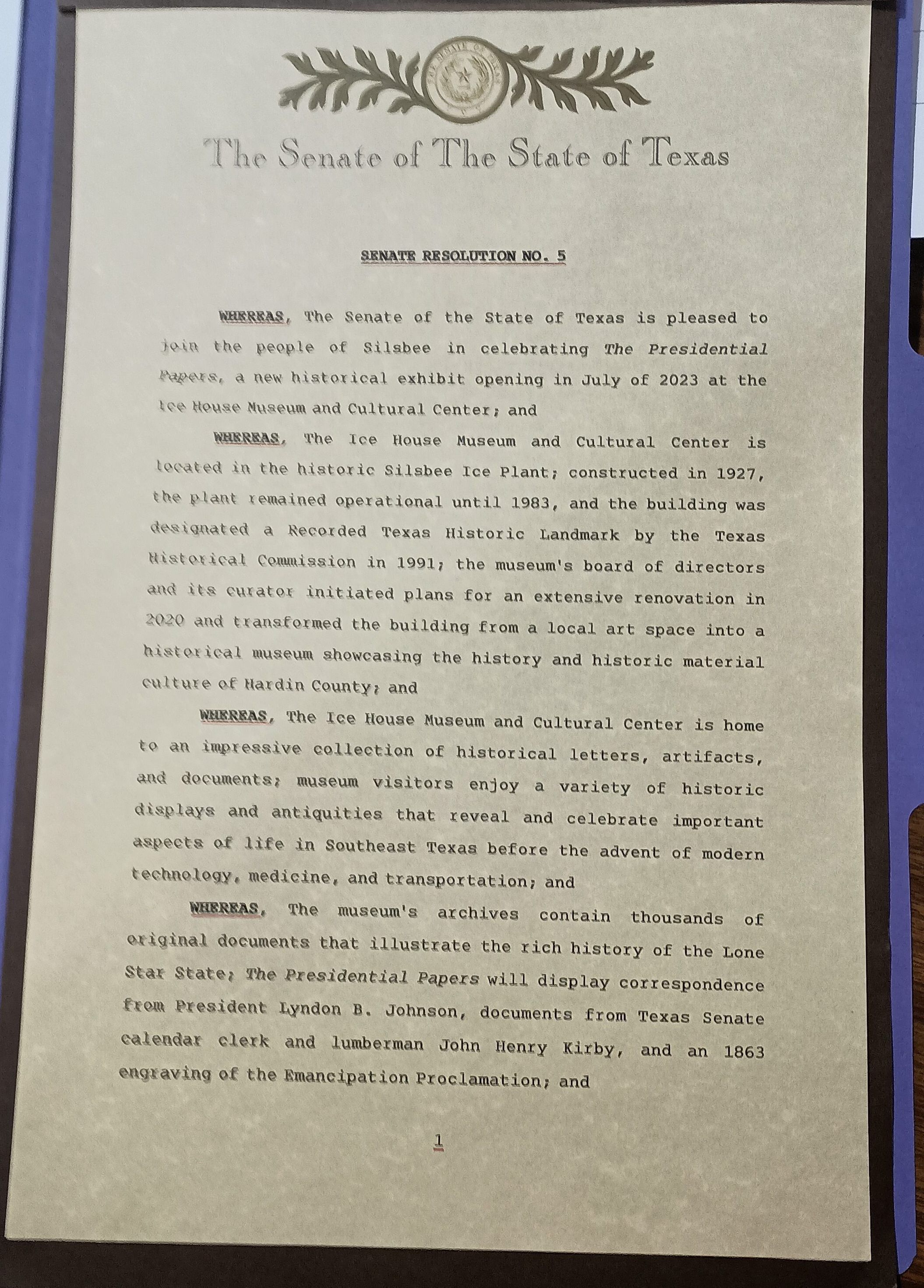 Senate Resolution No. 5 - State of Texas - Presidential Papers