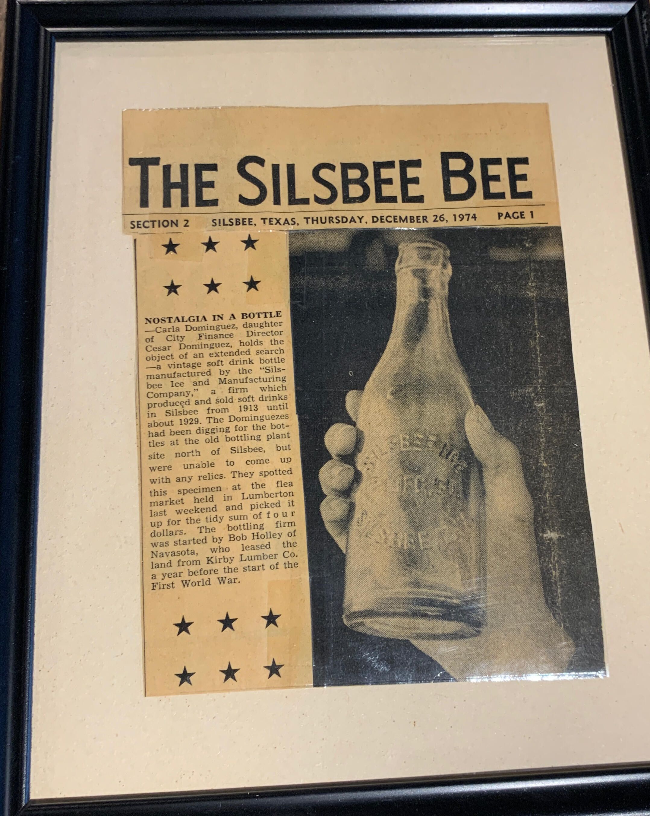 Carla Dominguez holds the vintage bottle she found at a Lumberton Flea Market. It was from a bottling plant north of Silsbee. Bob Holley leased the land from Kirby Lumber Co. The year before the start of the First World War.Collection