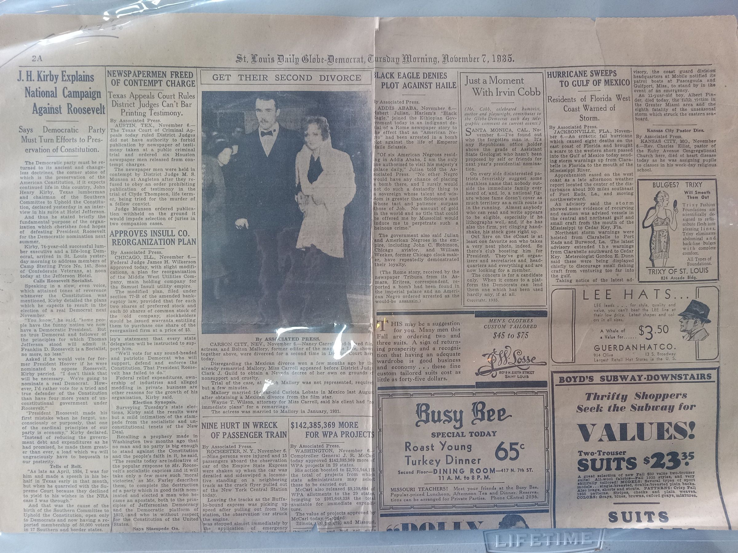 St Louis Daily Globe 11/7/1935 - "JH Kirby explains National Campaign against Roosevelt"Tags