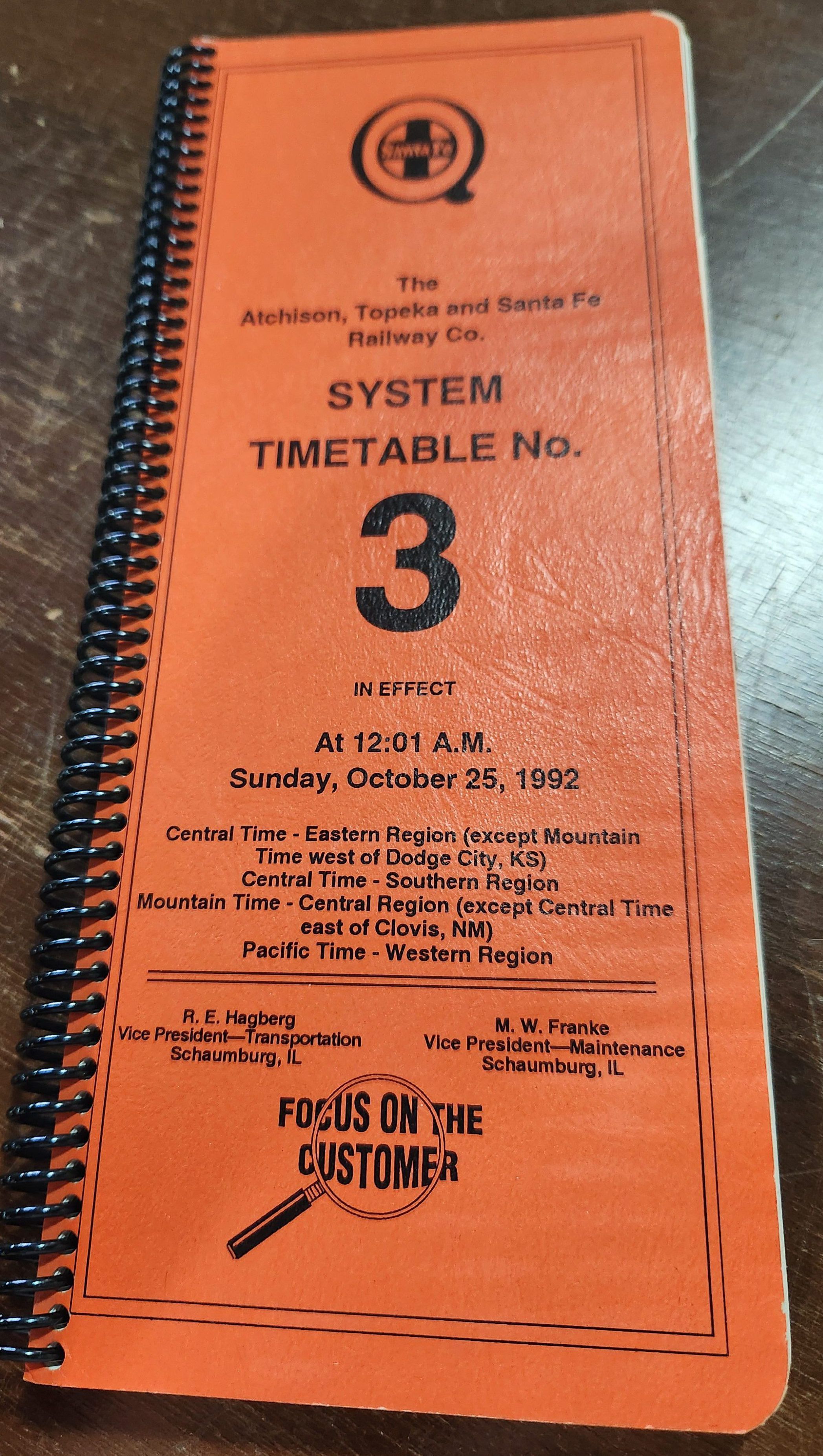 Atchison, Topeka and Santa Fe Railway Co Timetable for Sunday, October 25,1992Created By