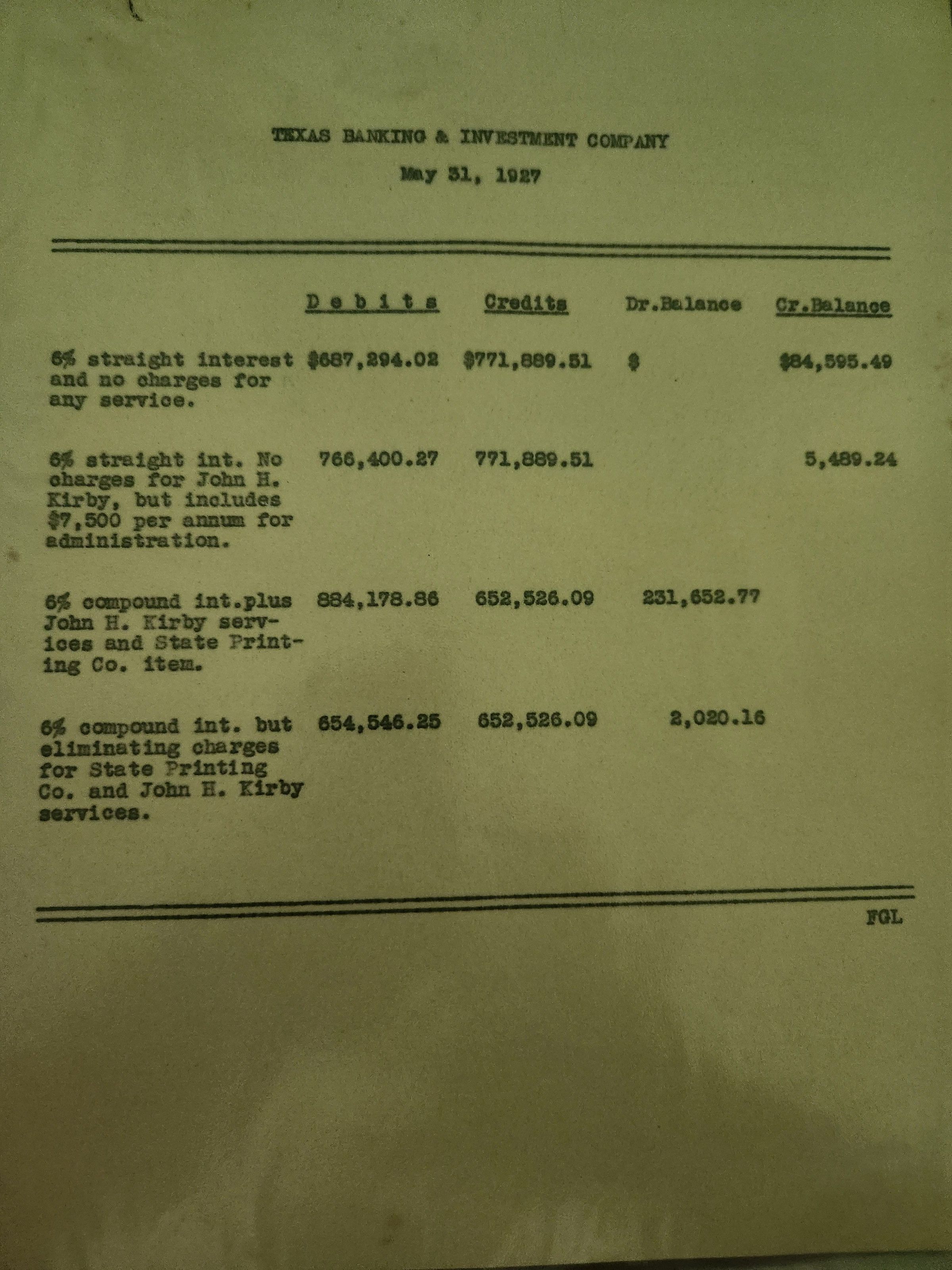Texas Banking & Investment Co Statement of Interest May 31, 1927Tags