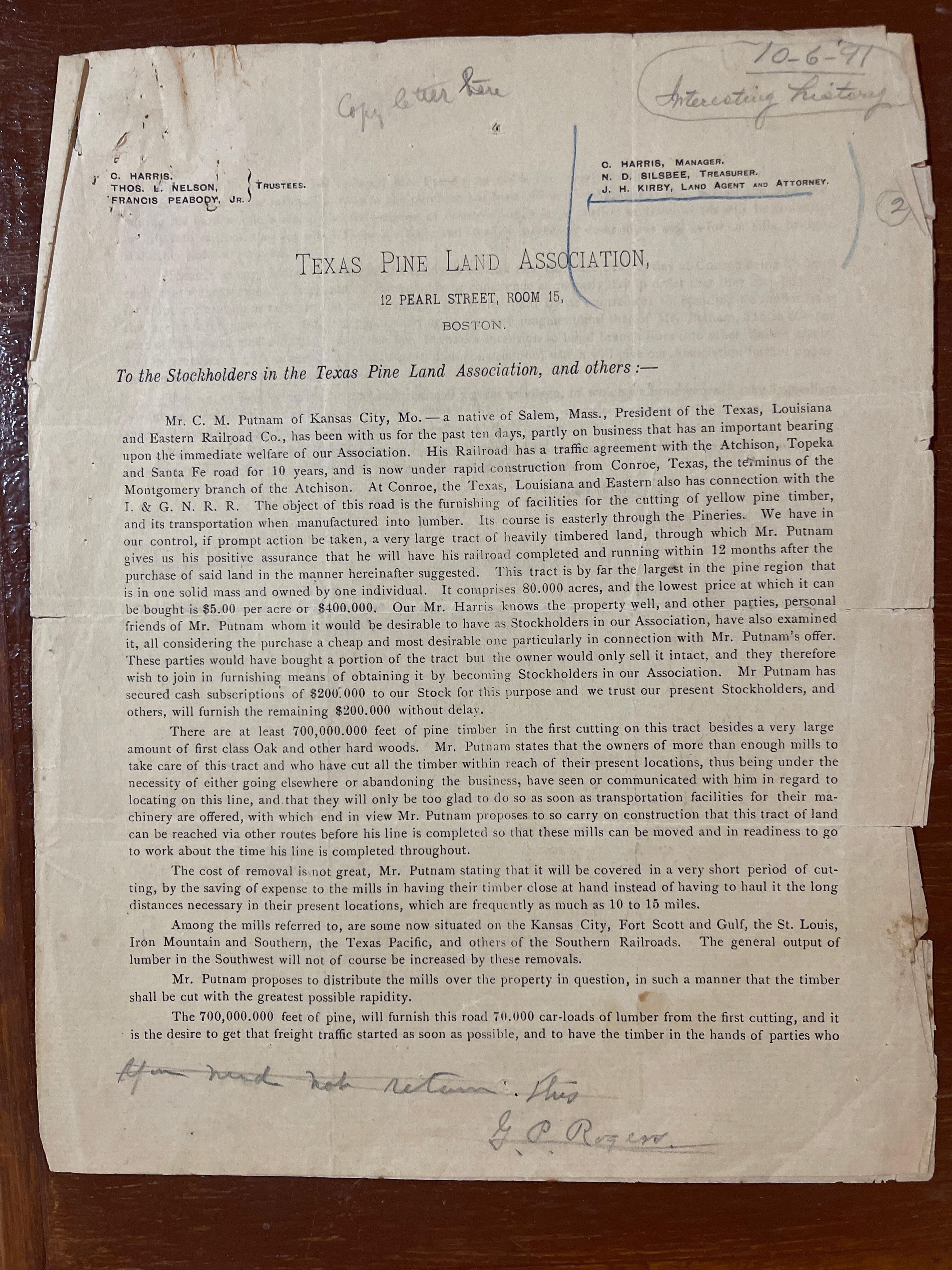 Texas Pine Land Association Circular to StockholdersTags
