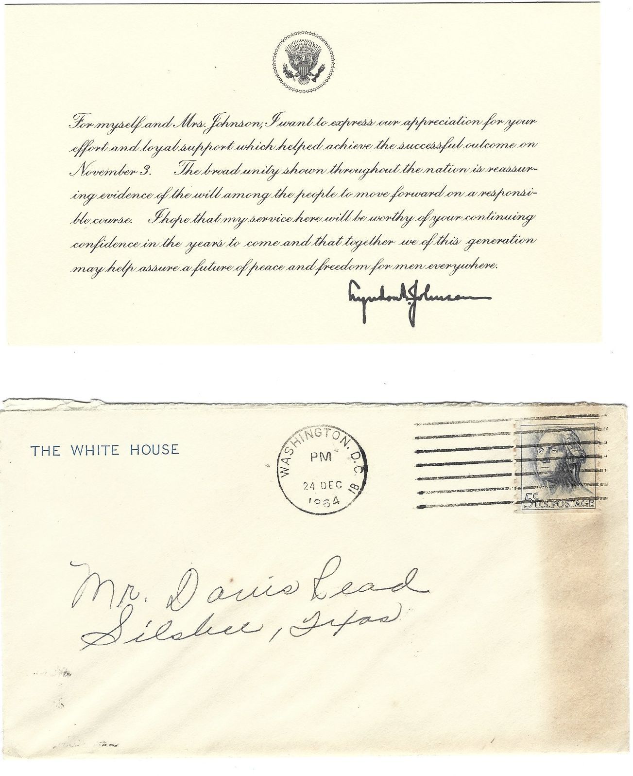 Thank You Card to David Read from Lyndon B Johnson December 1964Tags