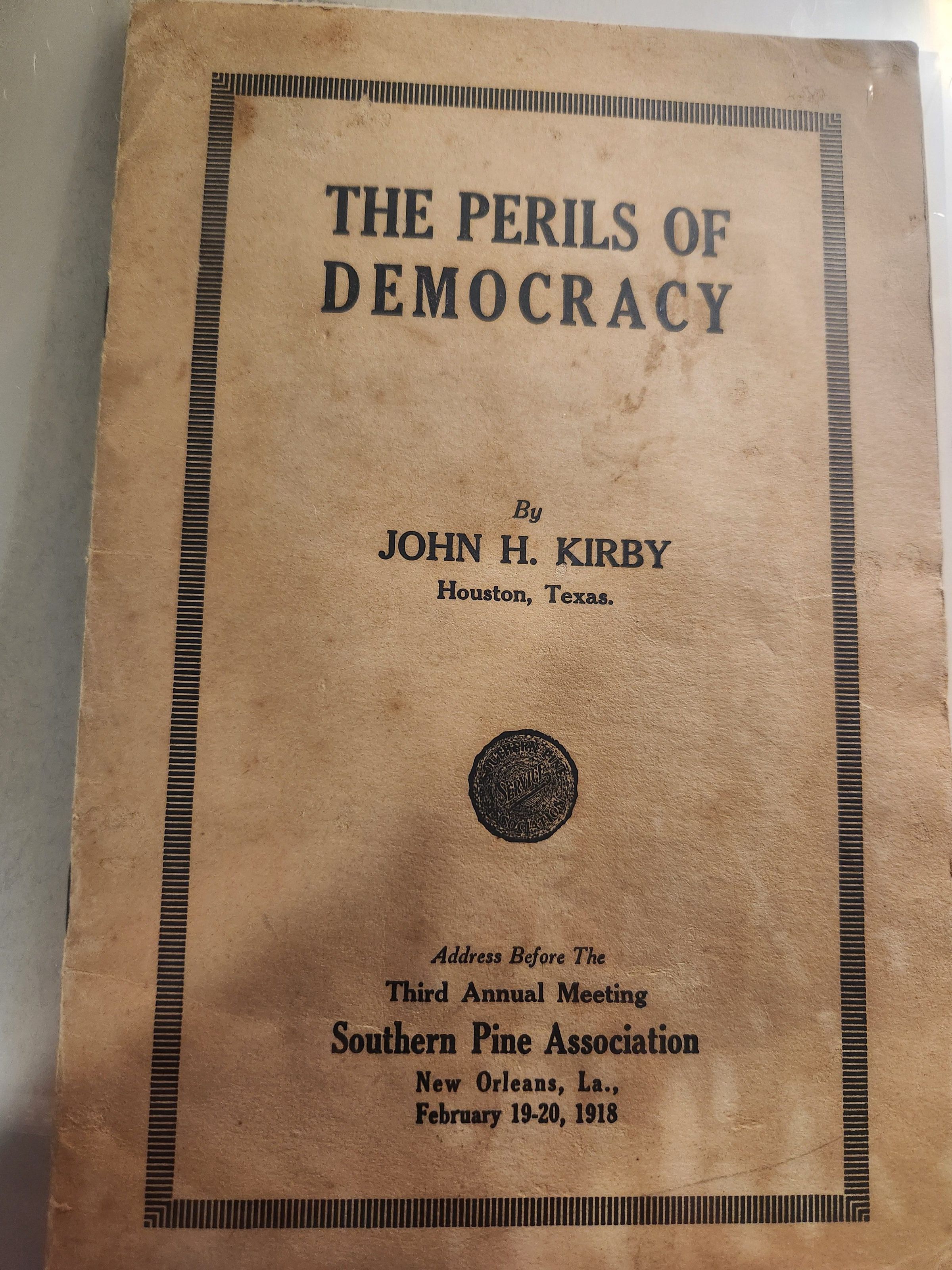 The Perils of Democracy by John H Kirby - Address to Southern Pine Assoc February 1918Tags