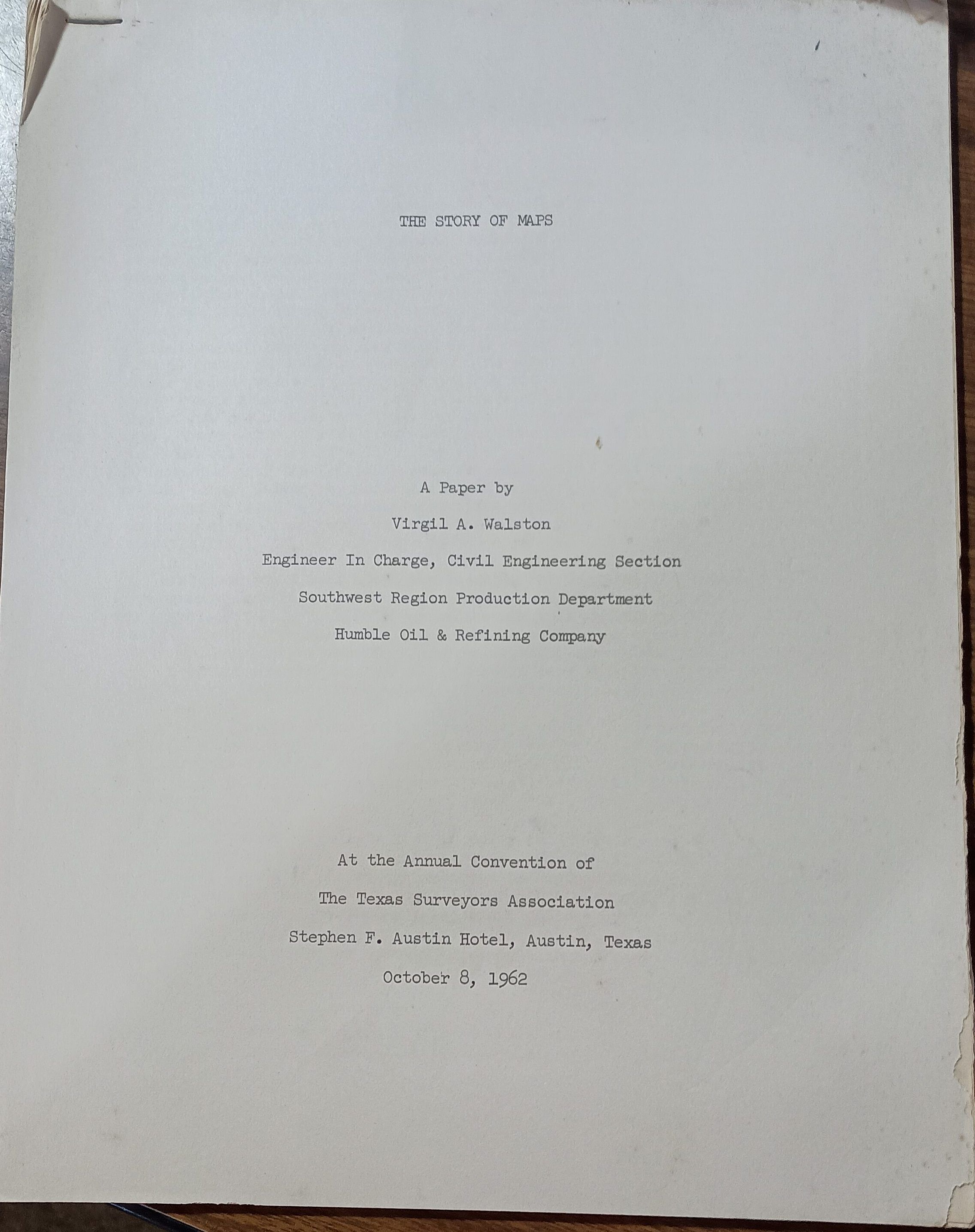 The Story of Maps - A Paper by Virgil A. Walston