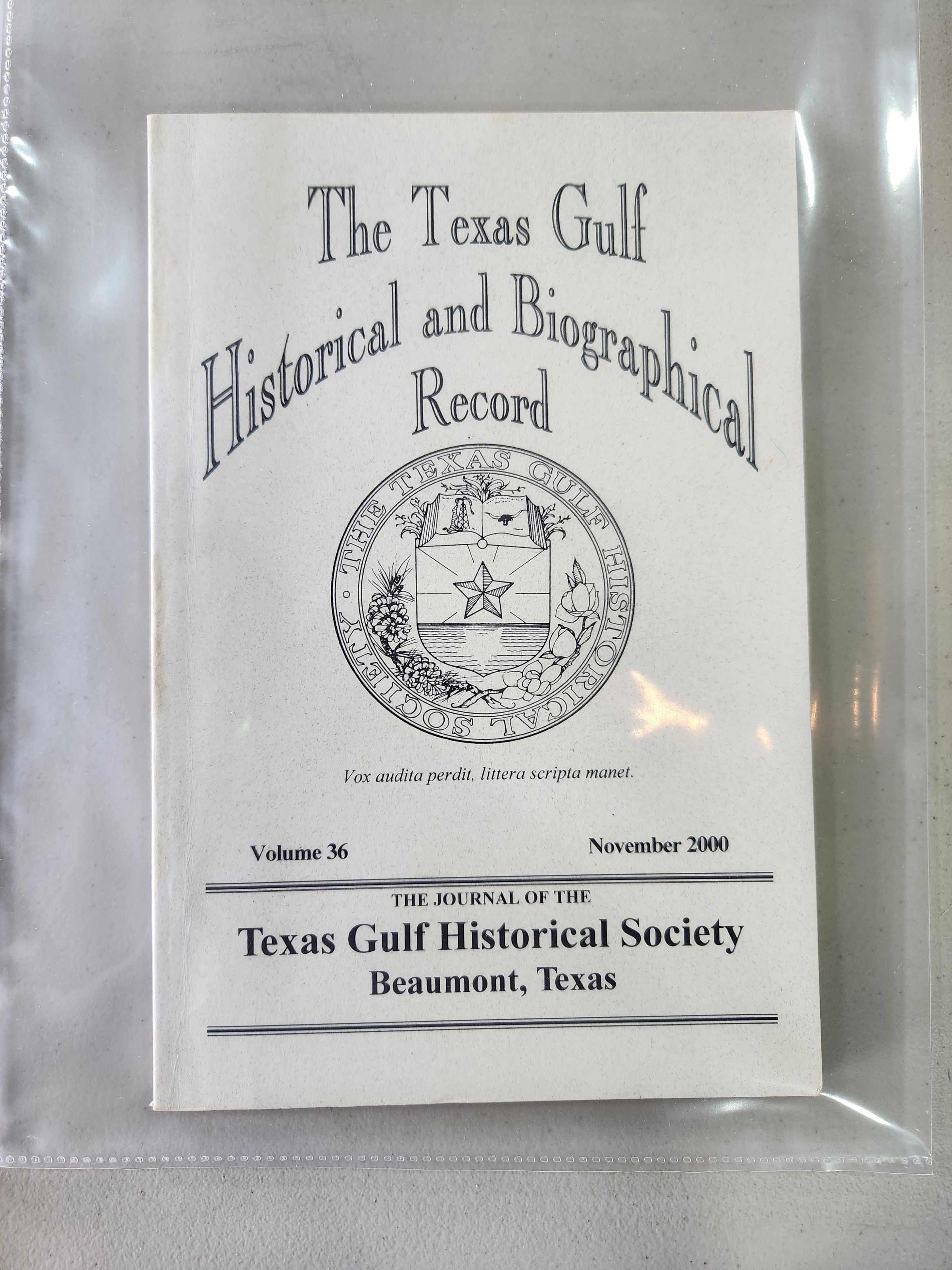 The Texas Gulf Historical and Biographical Record, Volume 36, November 2000